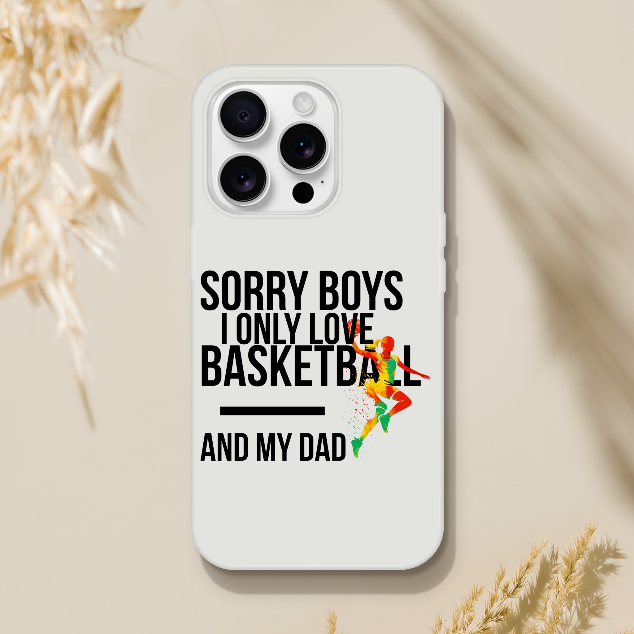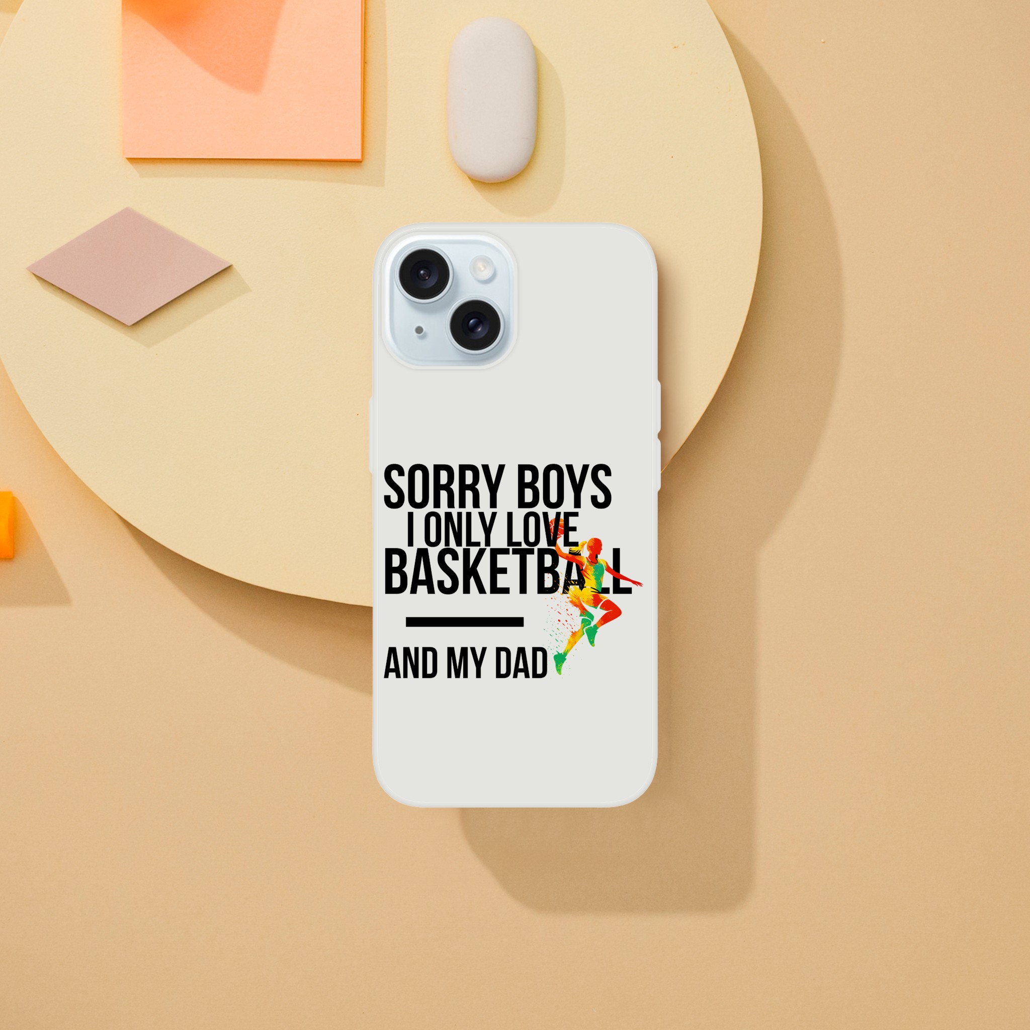 Coque Flexi compatible iPhone « Sorry Boys I Only Love Basketball And My Dad« . Transparente givrée, flexible et résistante.