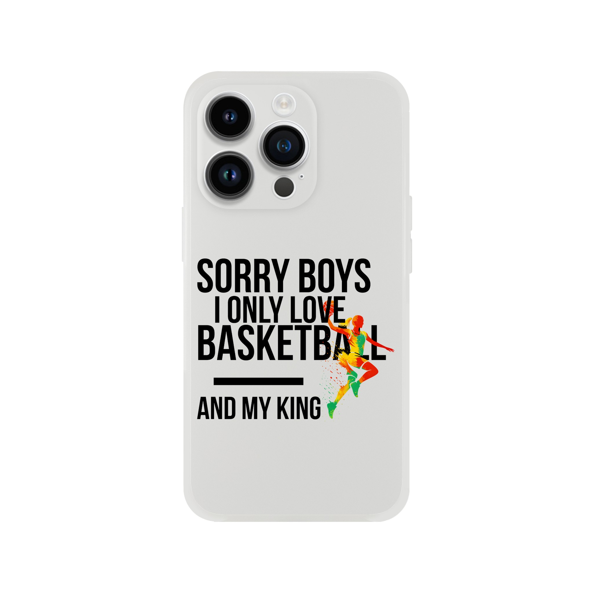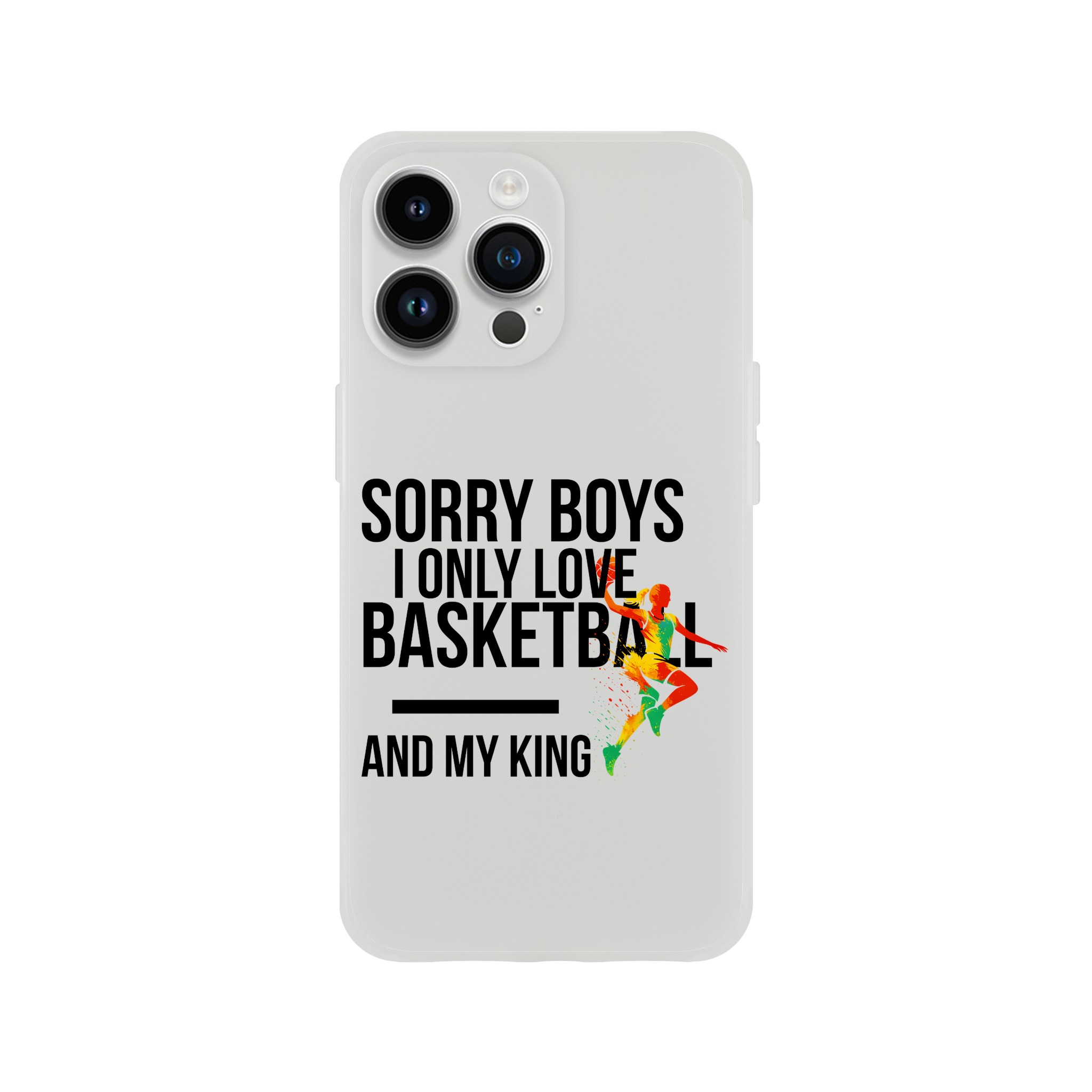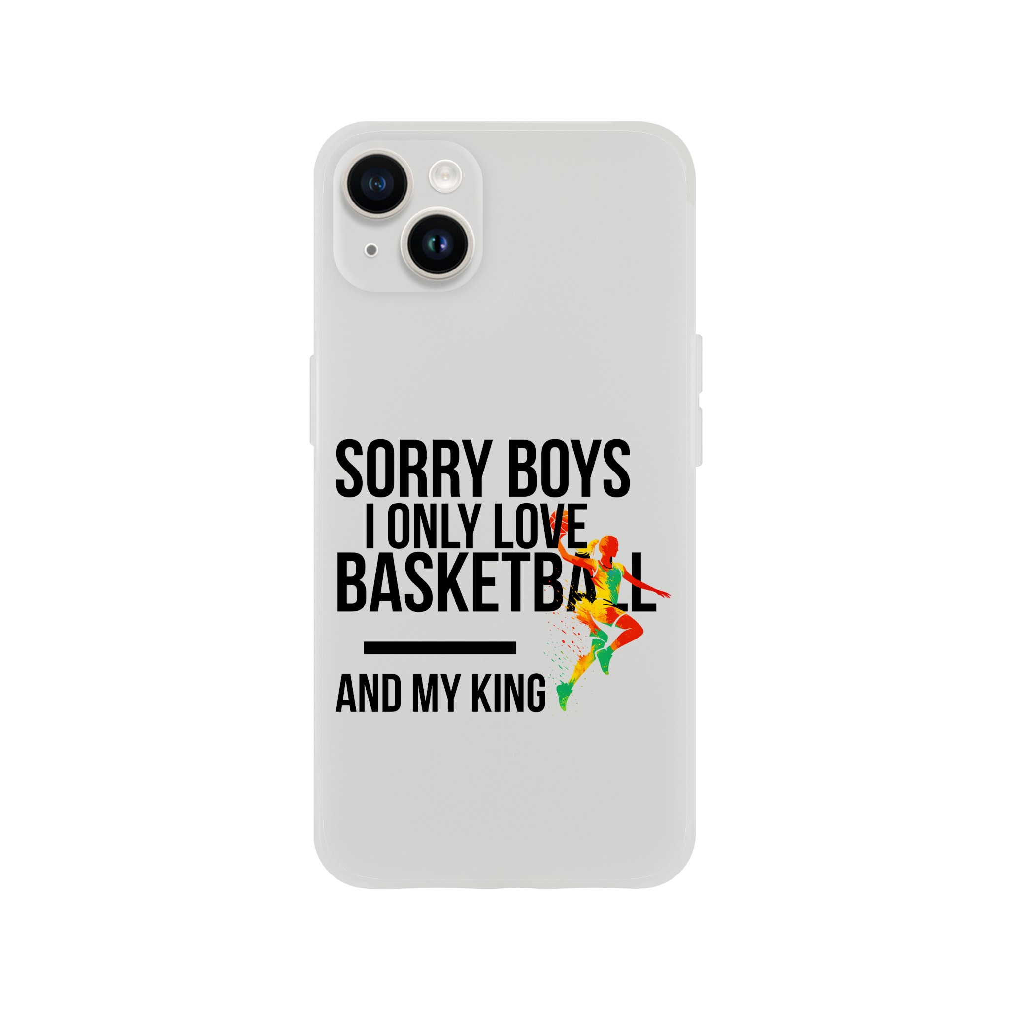Coque Flexi compatible iPhone « Sorry Boys I Only Love Basketball And My King« . Transparente givrée, flexible et résistante.
