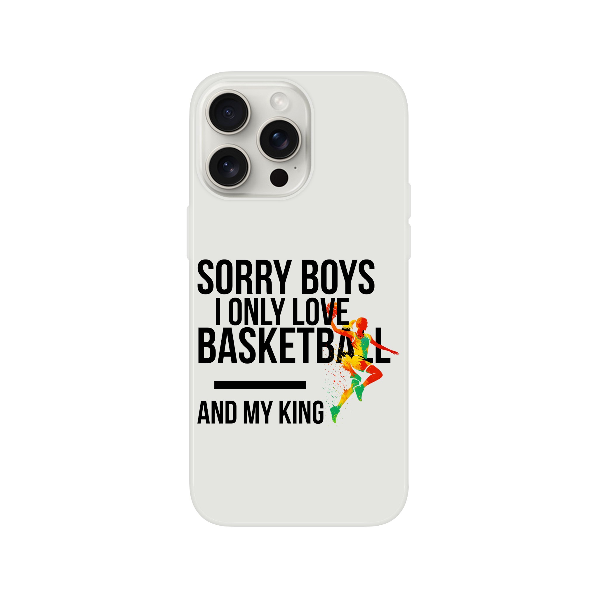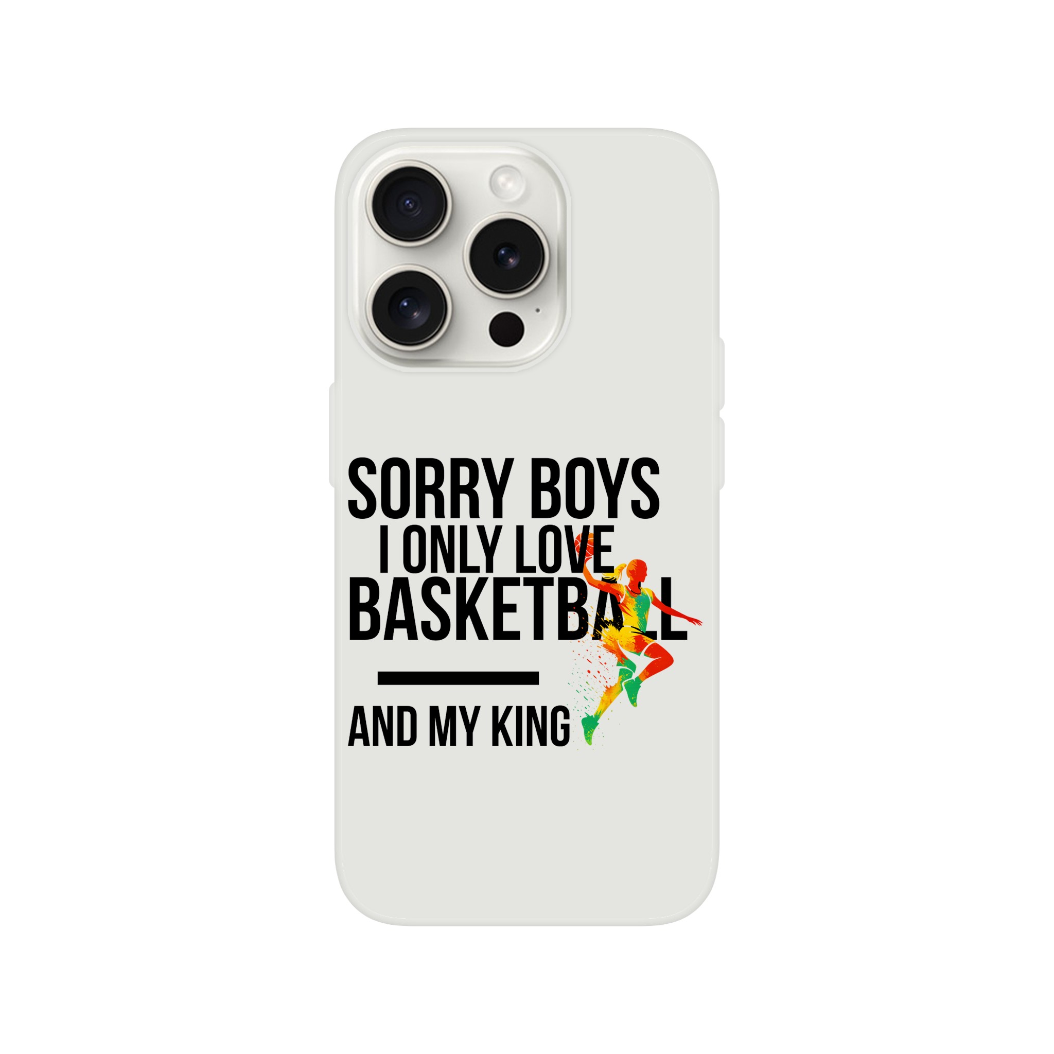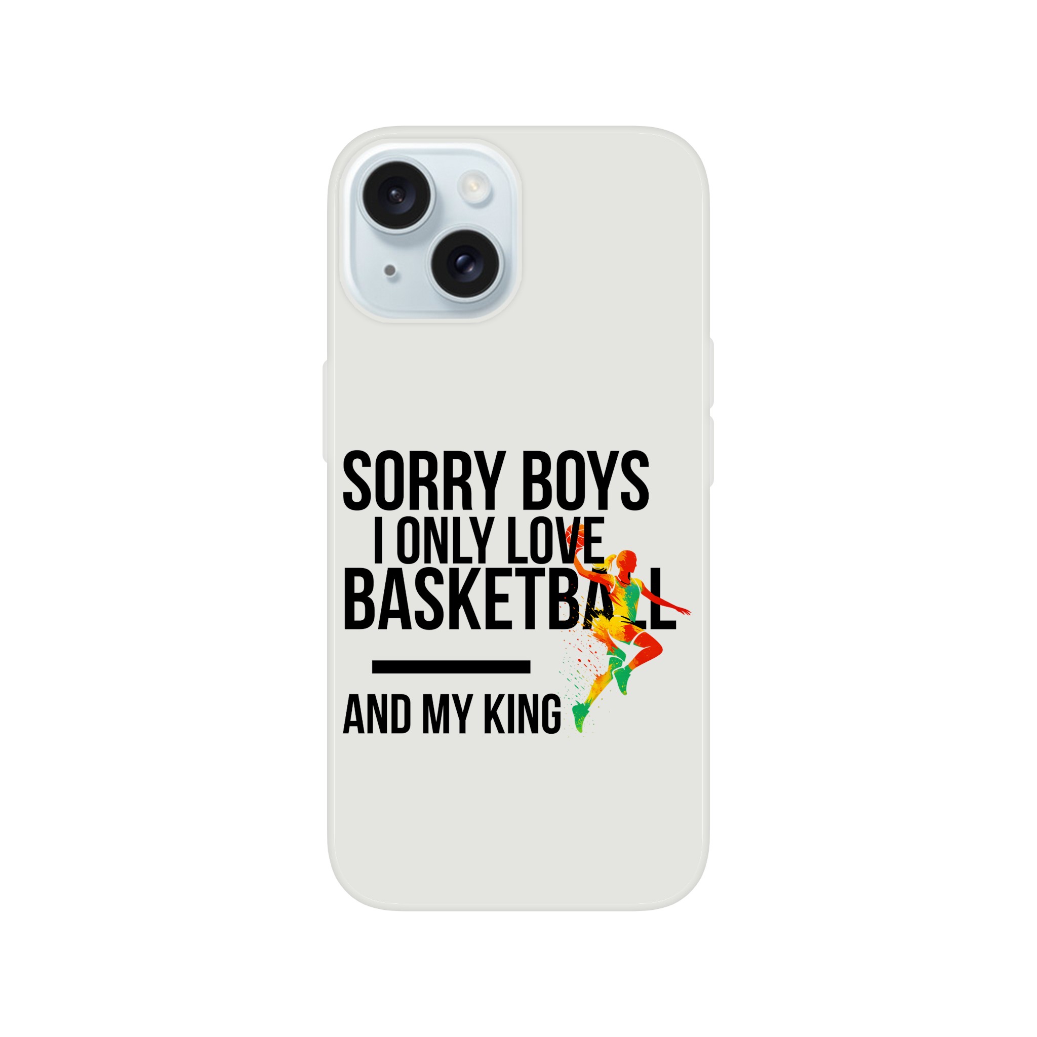 Coque Flexi compatible iPhone « Sorry Boys I Only Love Basketball And My King« . Transparente givrée, flexible et résistante.