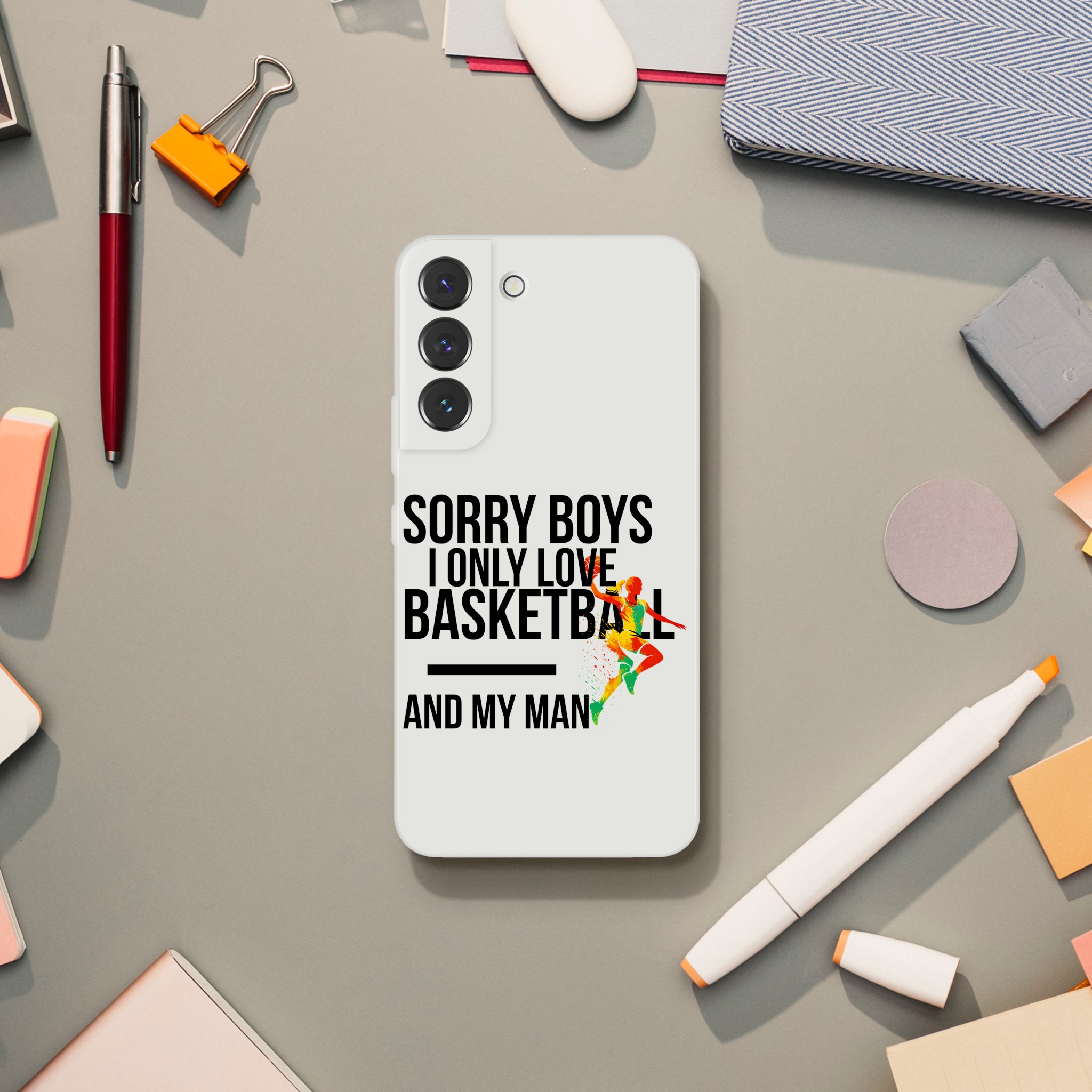 Coque Flexi compatible Samsung « Sorry Boys I Only Love Basketball And My Man« . Transparente givrée, flexible et résistante.