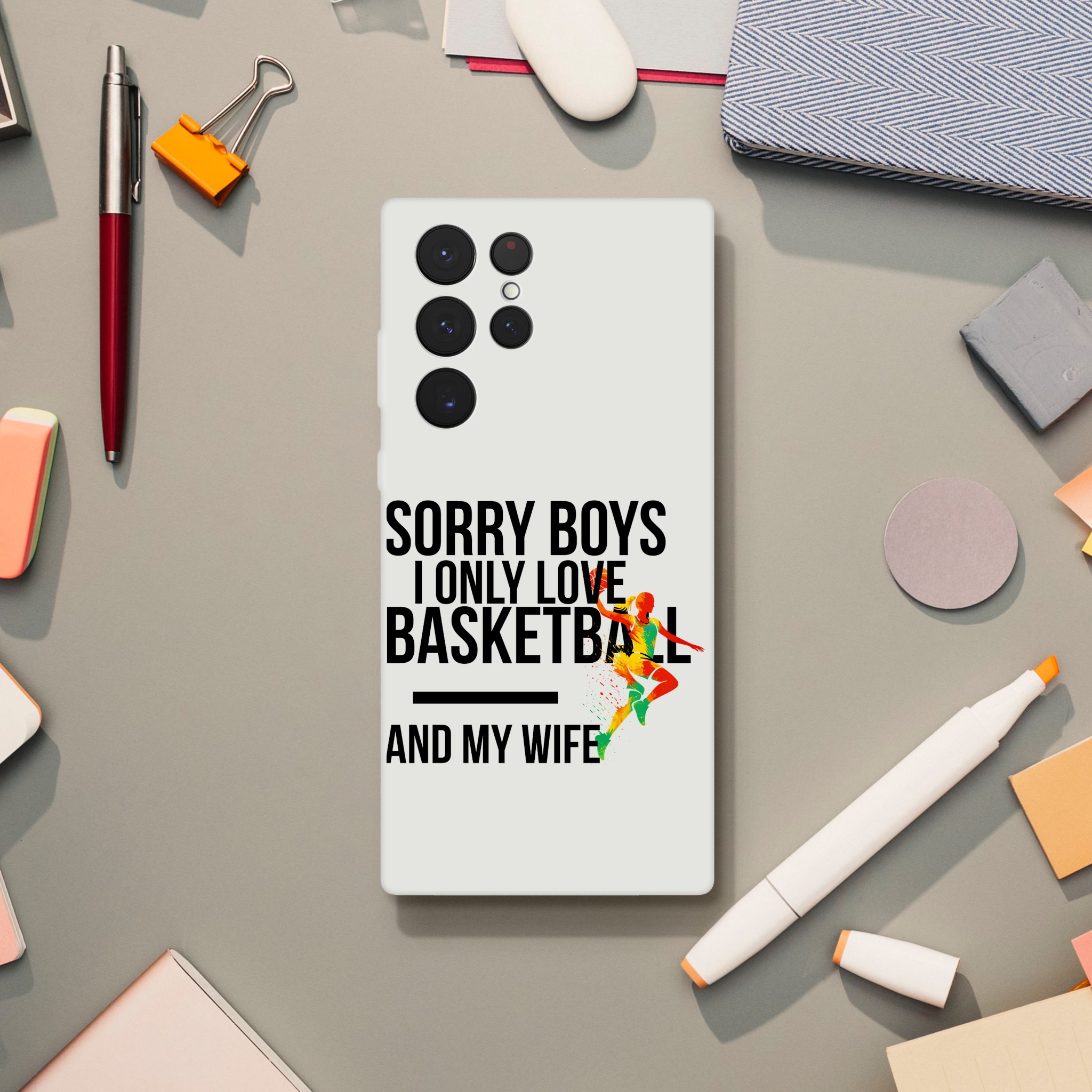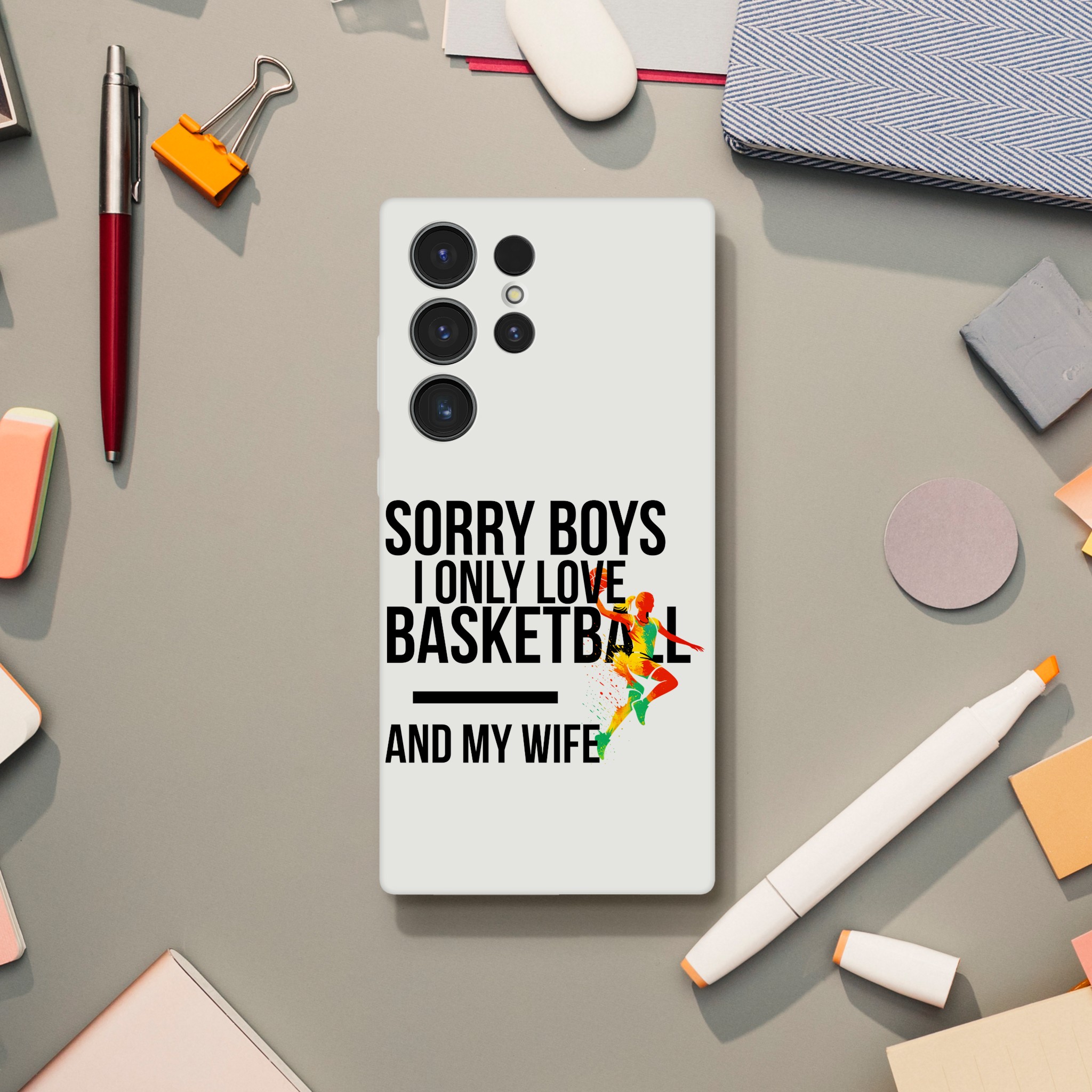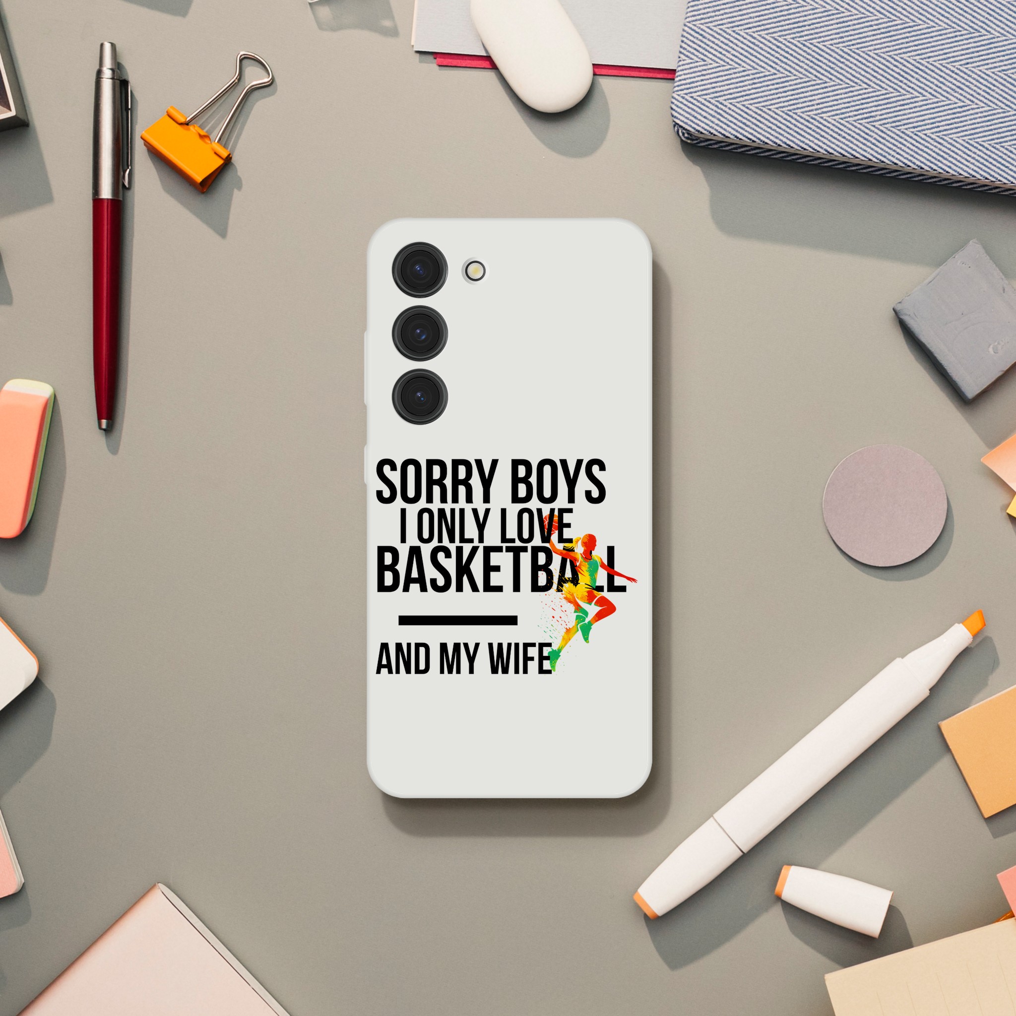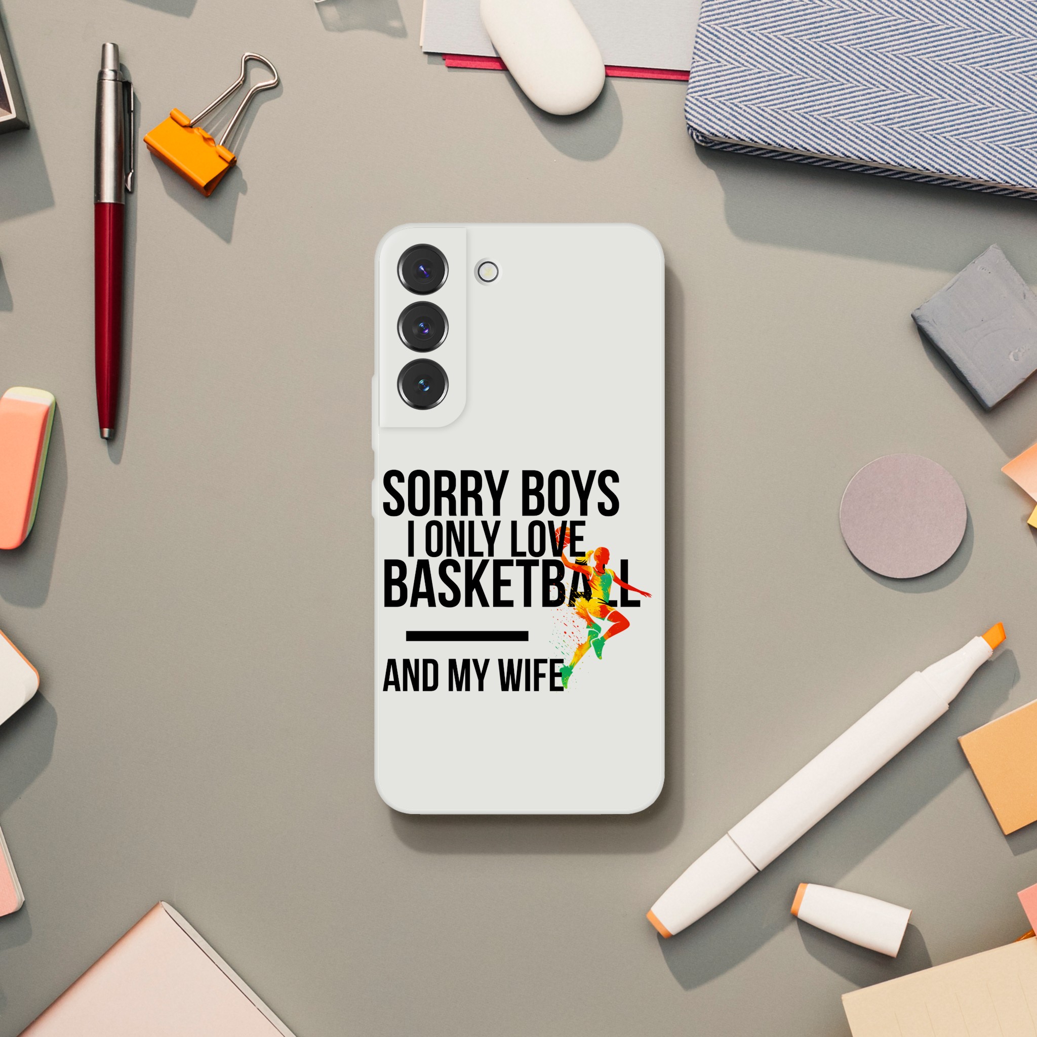 Coque Flexi compatible Samsung « Sorry Boys I Only Love Basketball And My Wife« . Transparente givrée, flexible et résistante.