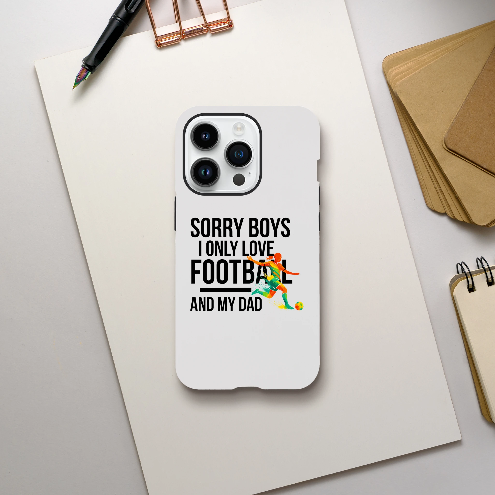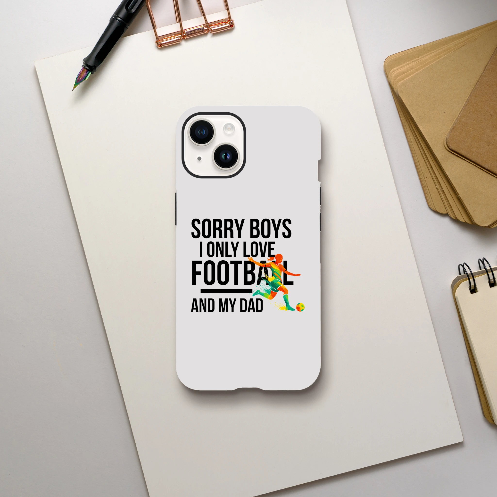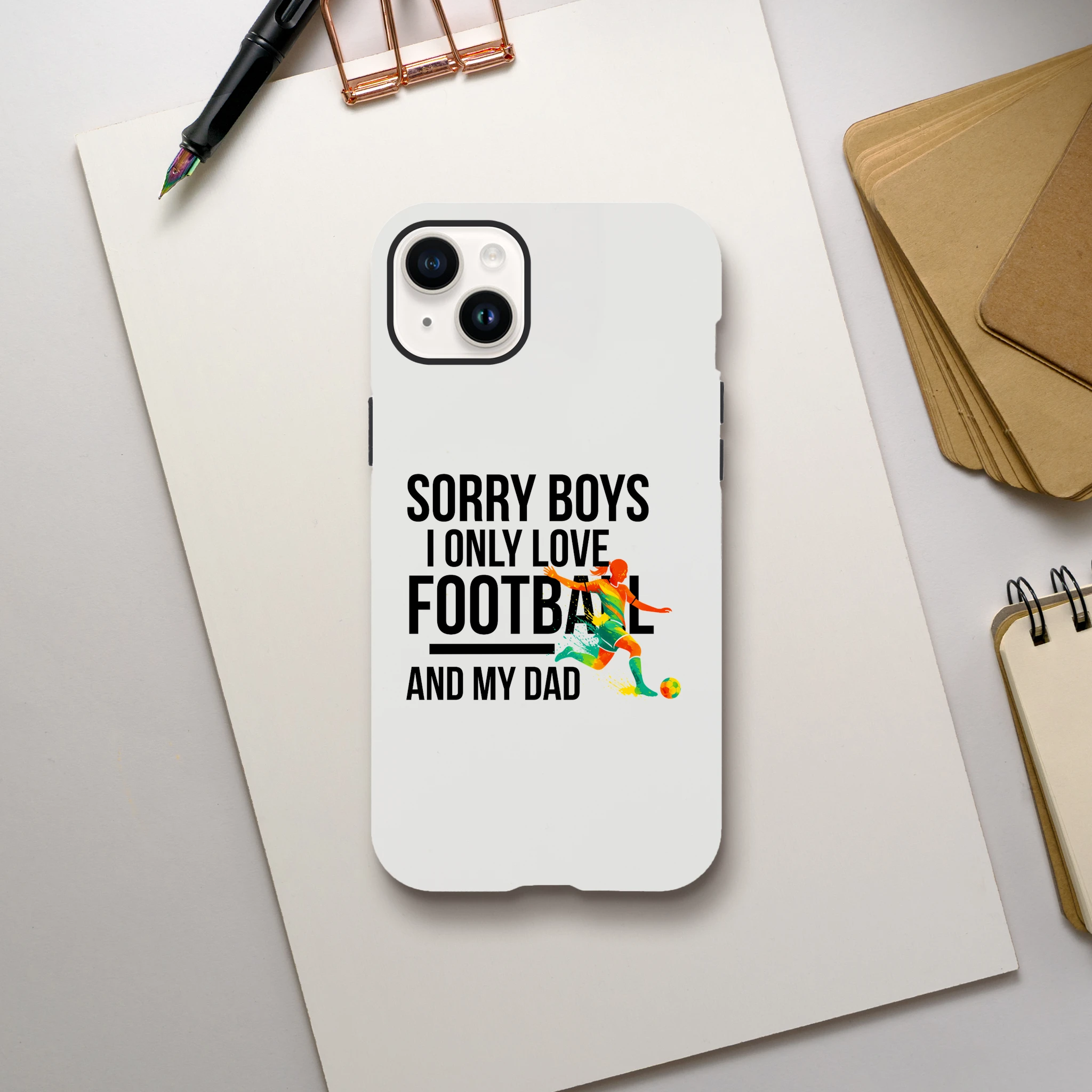 Coque iPhone exclusive « Sorry Boys I Only Love Football And My Dad« . Protection ultime pour le téléphone. La coque résistante offre une sécurité à double couche avec une finition brillante élégante. L’équilibre parfait entre protection et style pour passionnés.