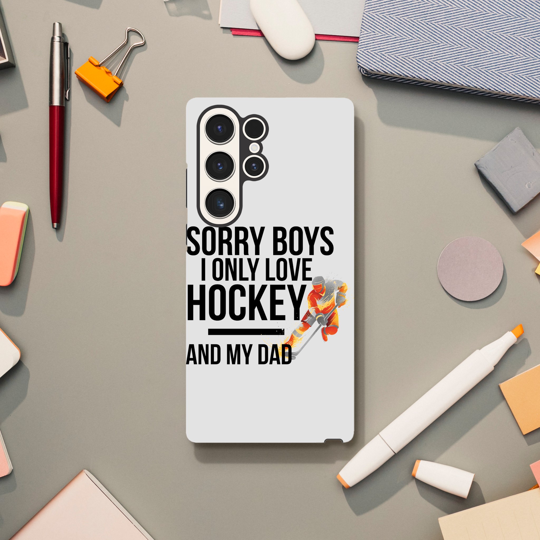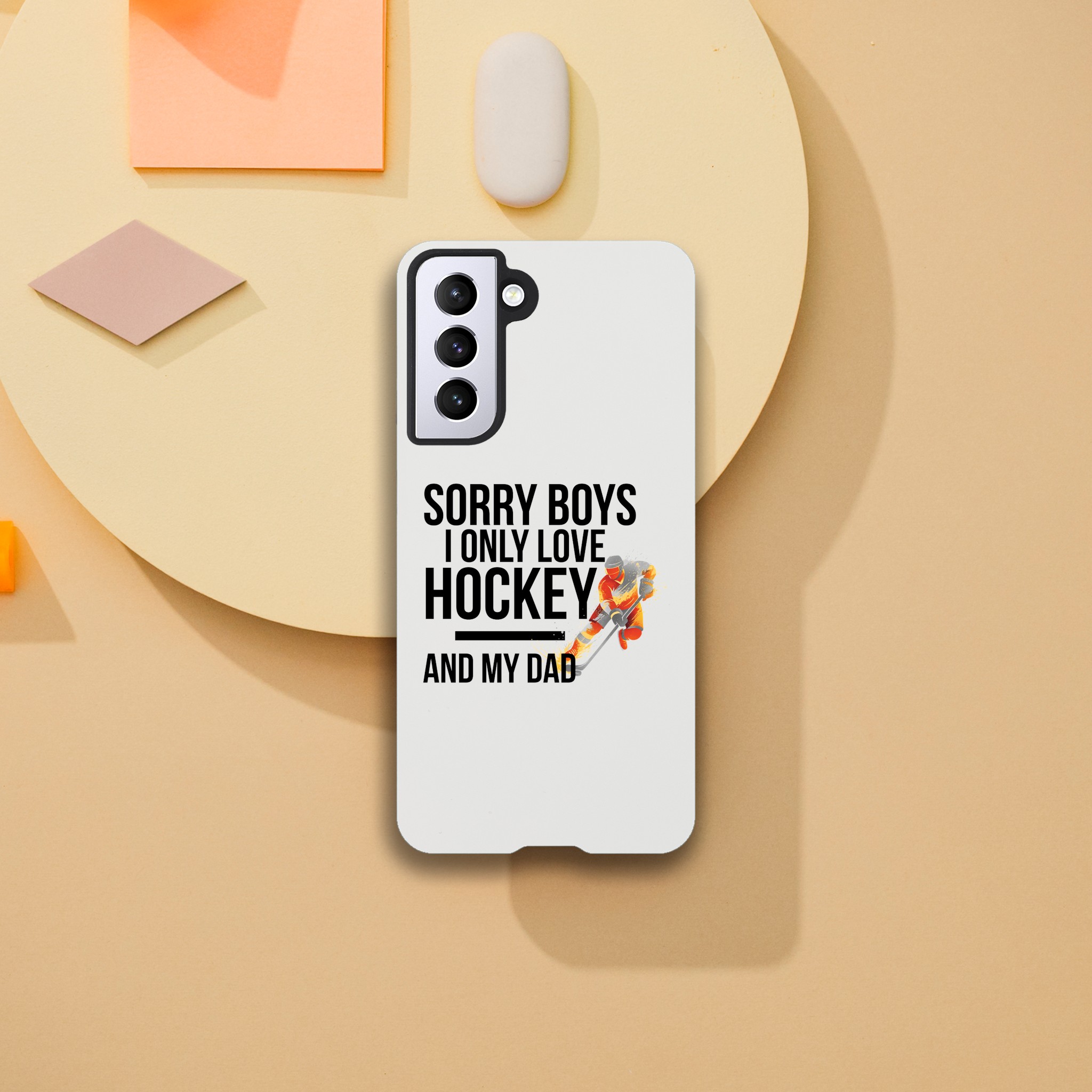 Cette coque sport personnalisée "Sorry Boys I Only Love Hockey And My Dad" est l'accessoire parfait pour tous les fans de sport. Conçue spécialement pour les passionnés qui vivent et respirent leur sport favori, cette coque Samsung – Galaxy combine protection exceptionnelle et design exclusif.