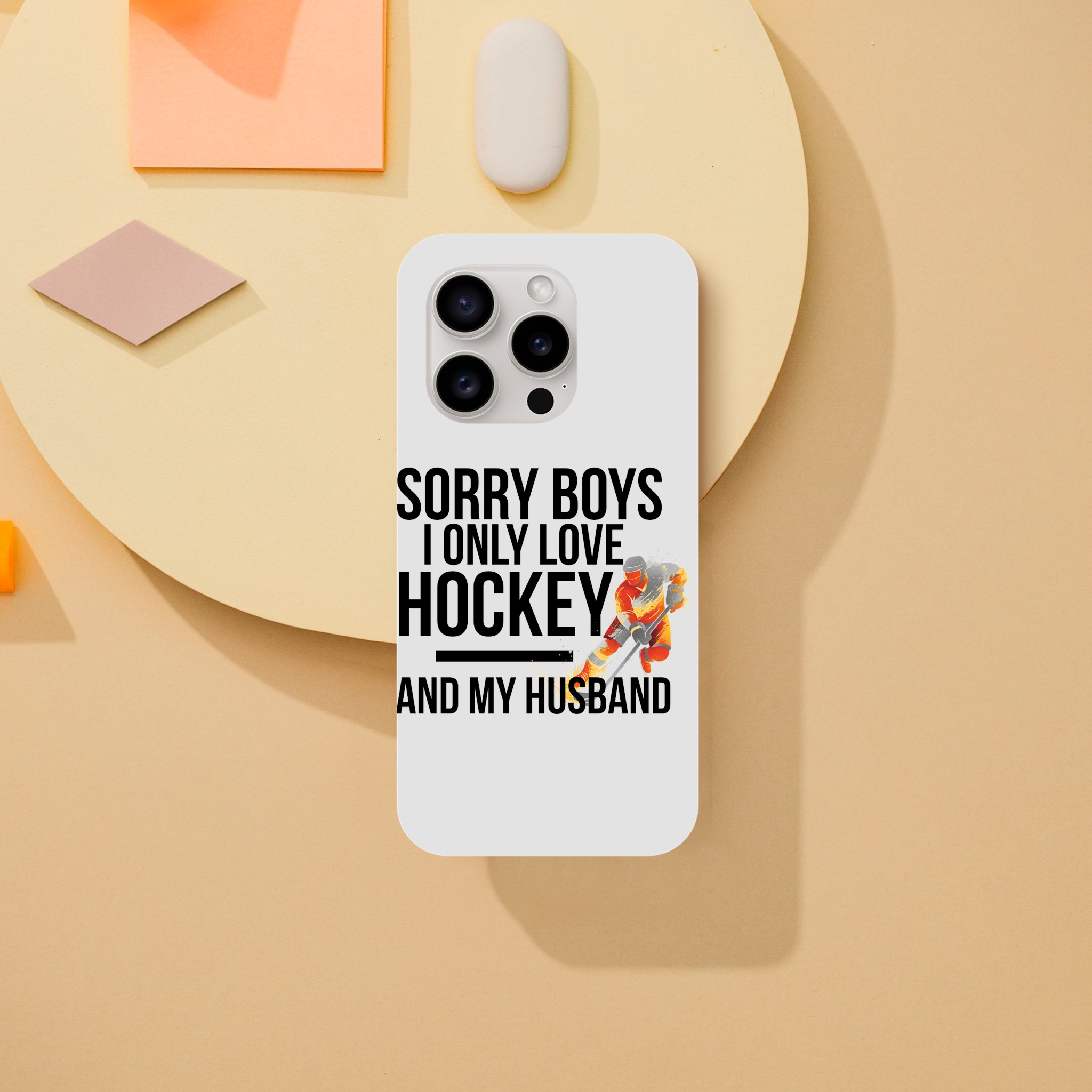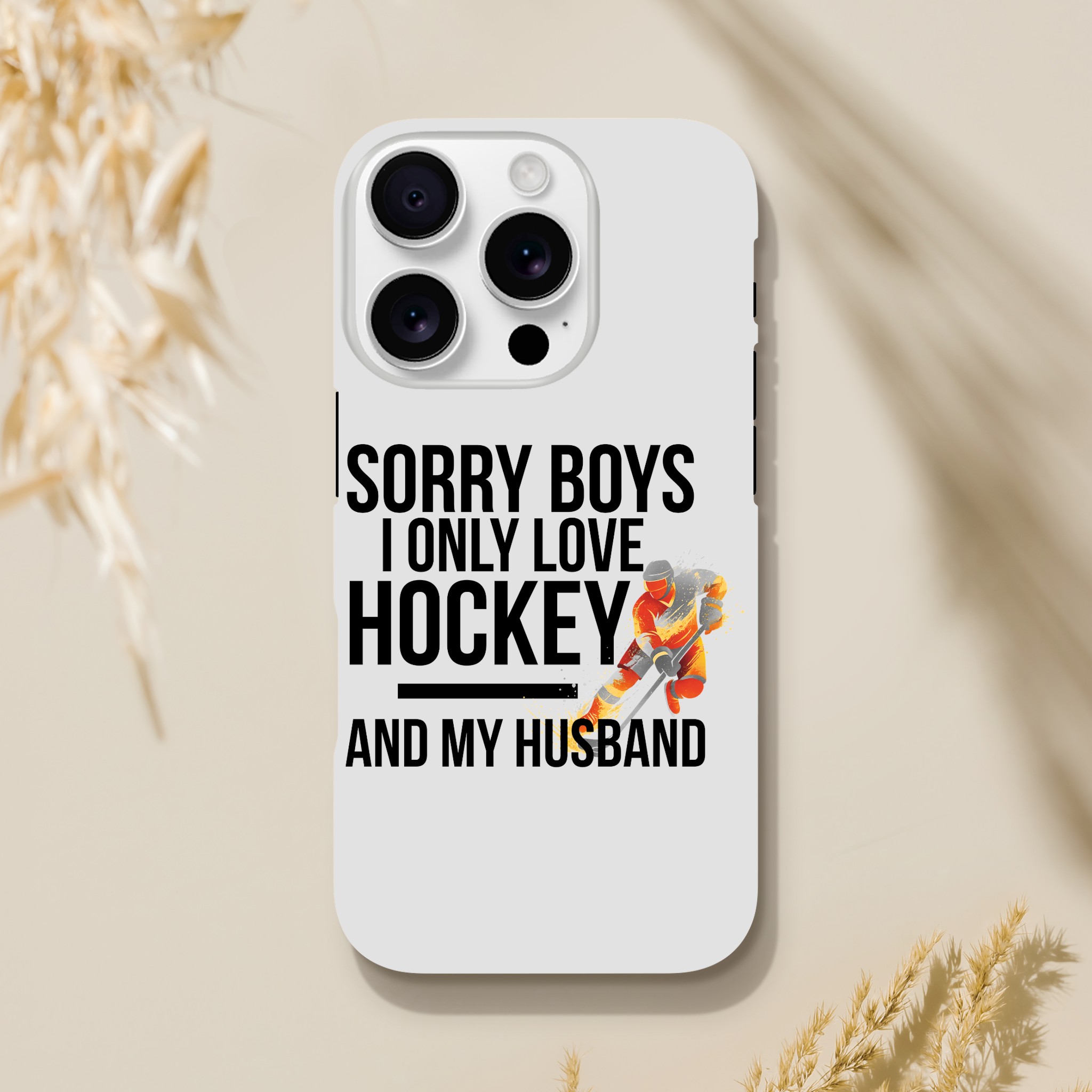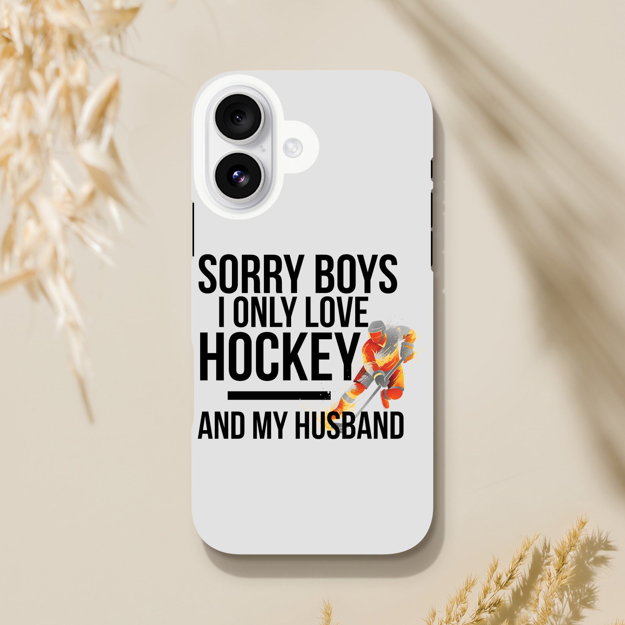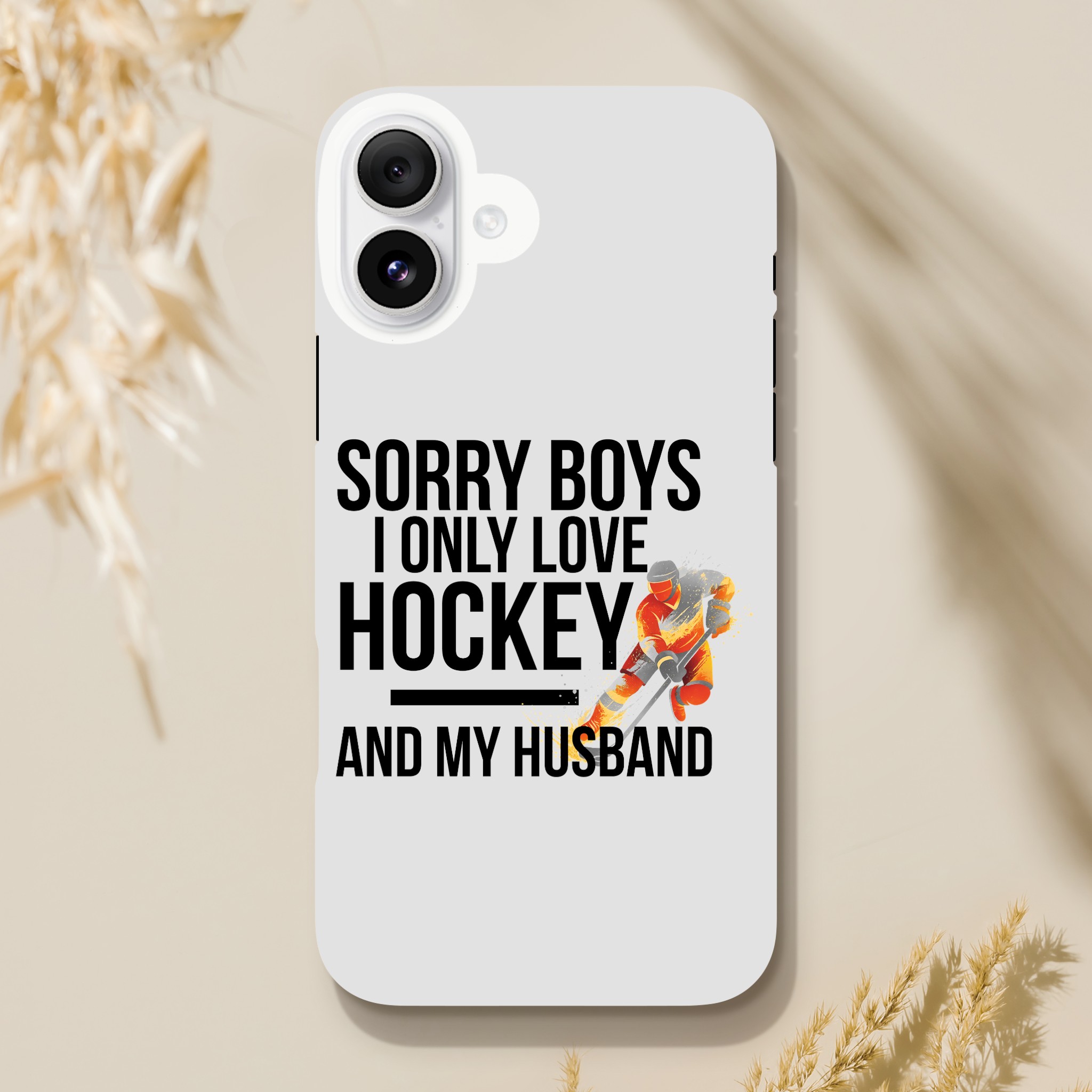 Coque Hockey Husband exclusive « Sorry Boys I Only Love Hockey And My Husband« . Protection double couche élégante pour passionnés. Compatible iPhone.