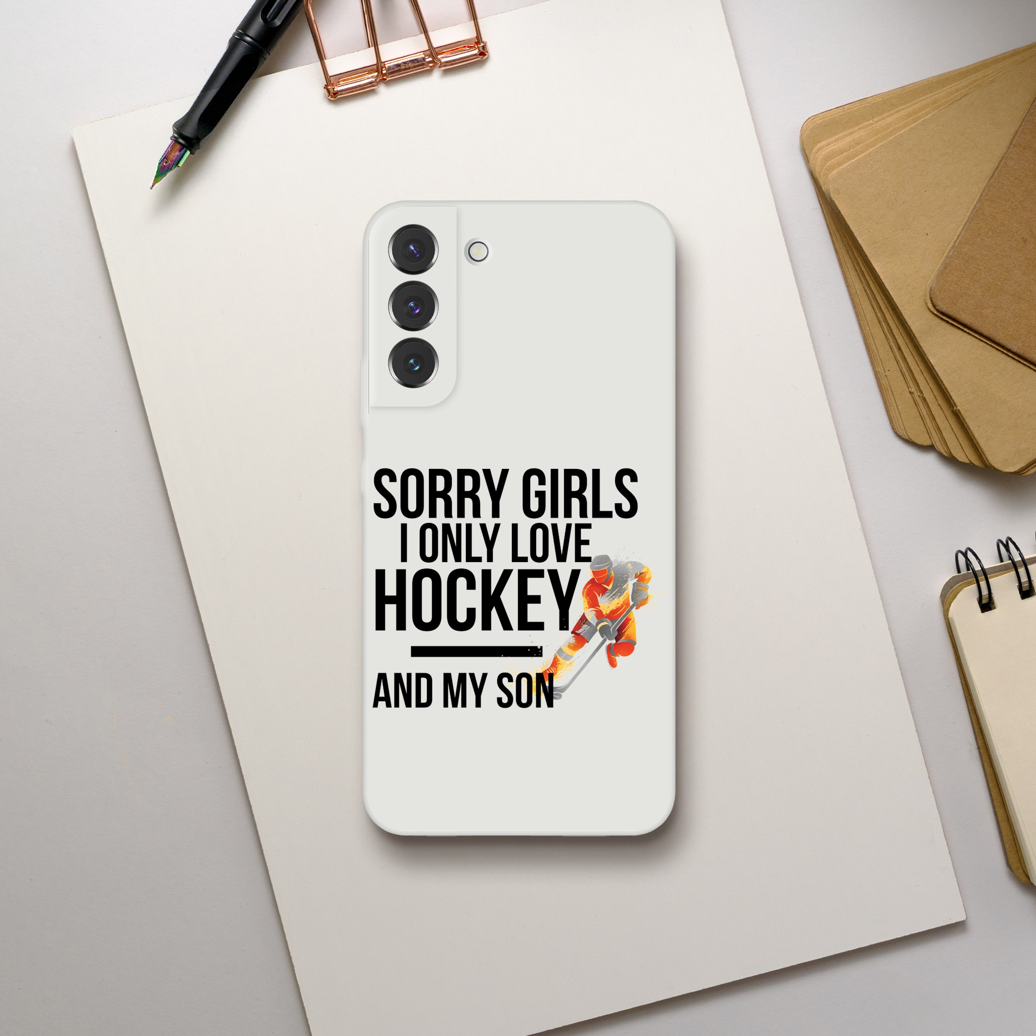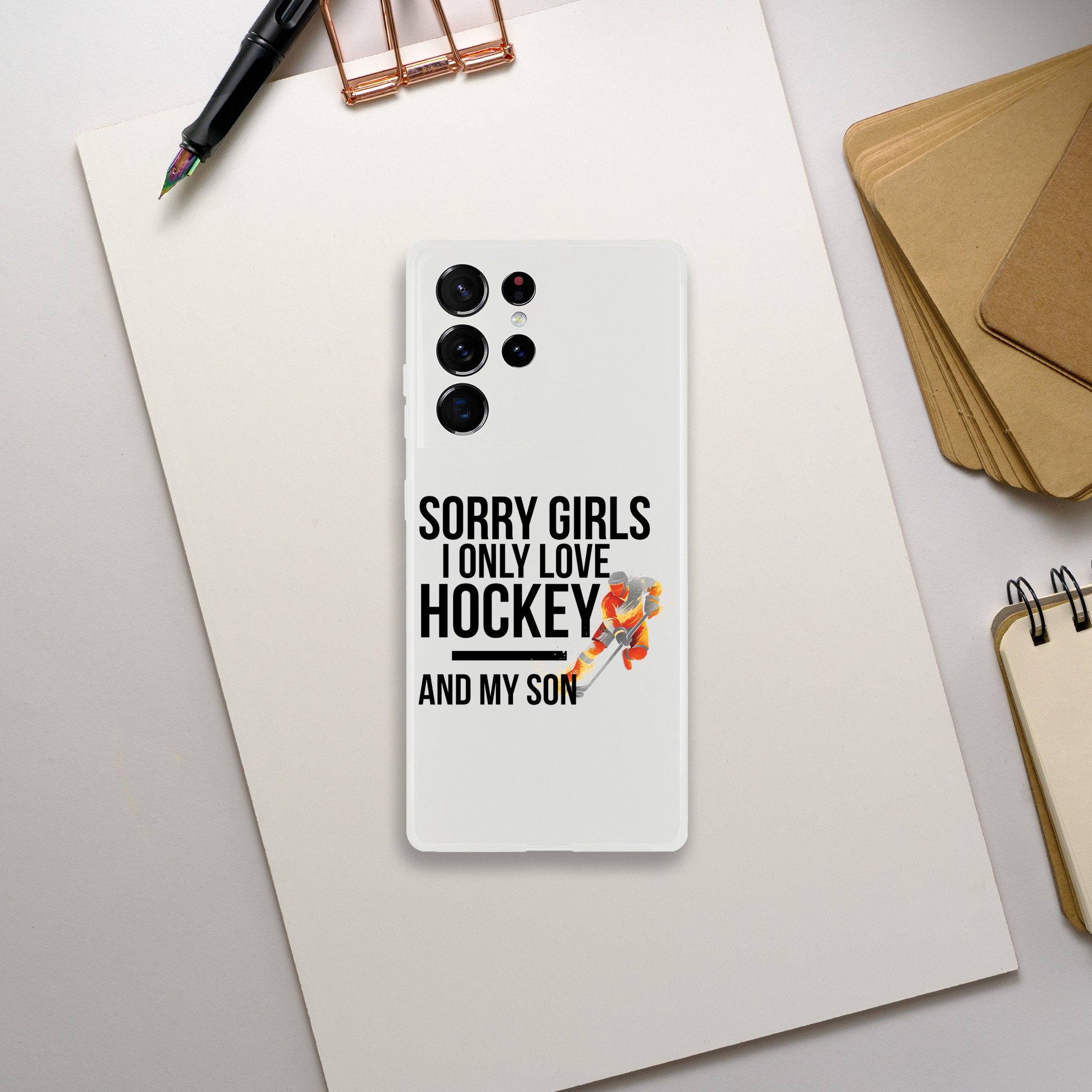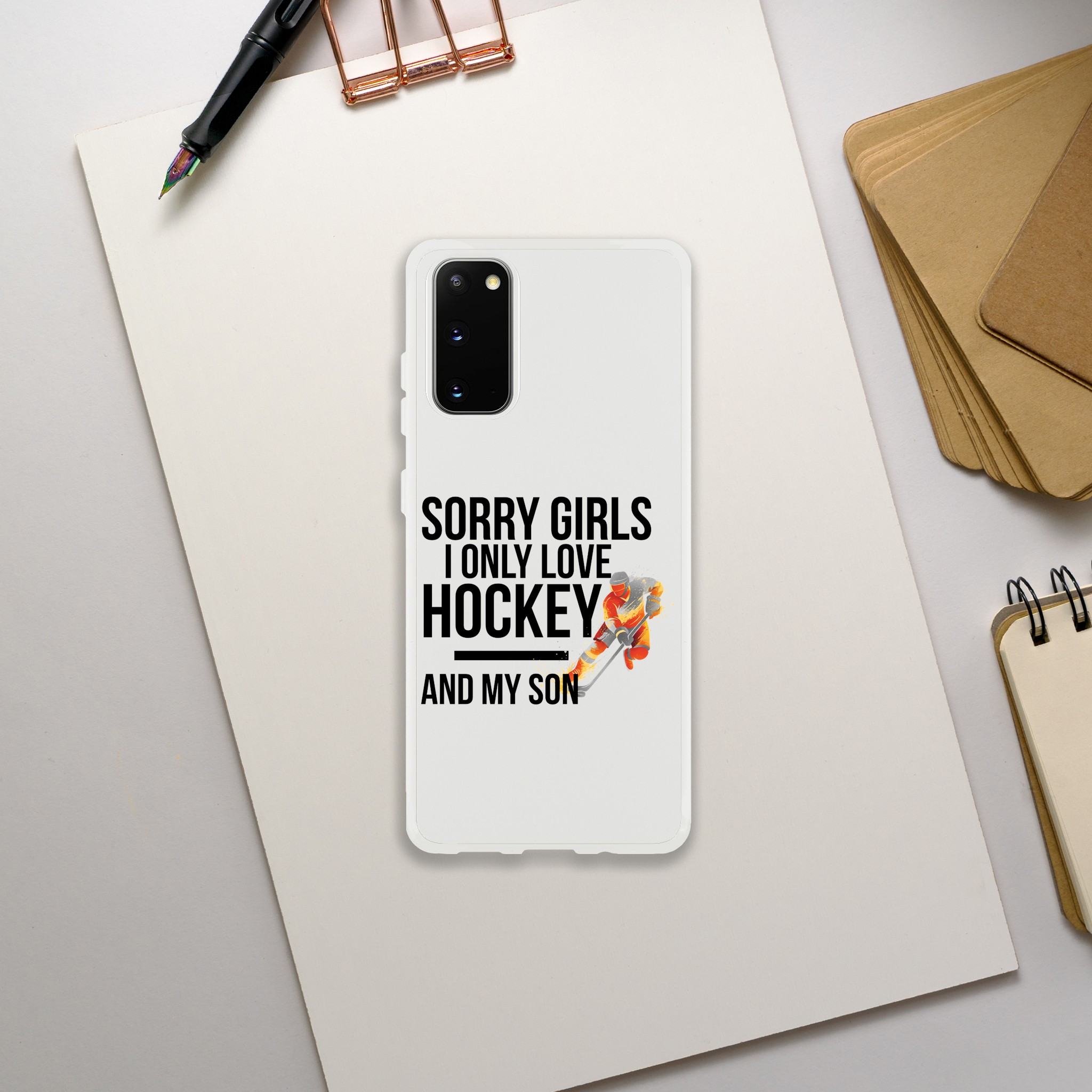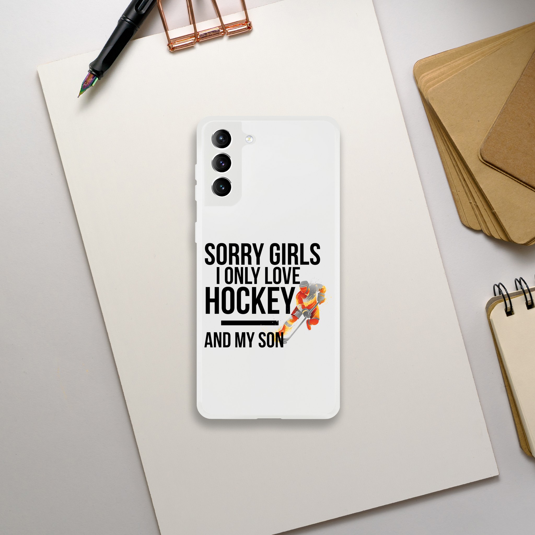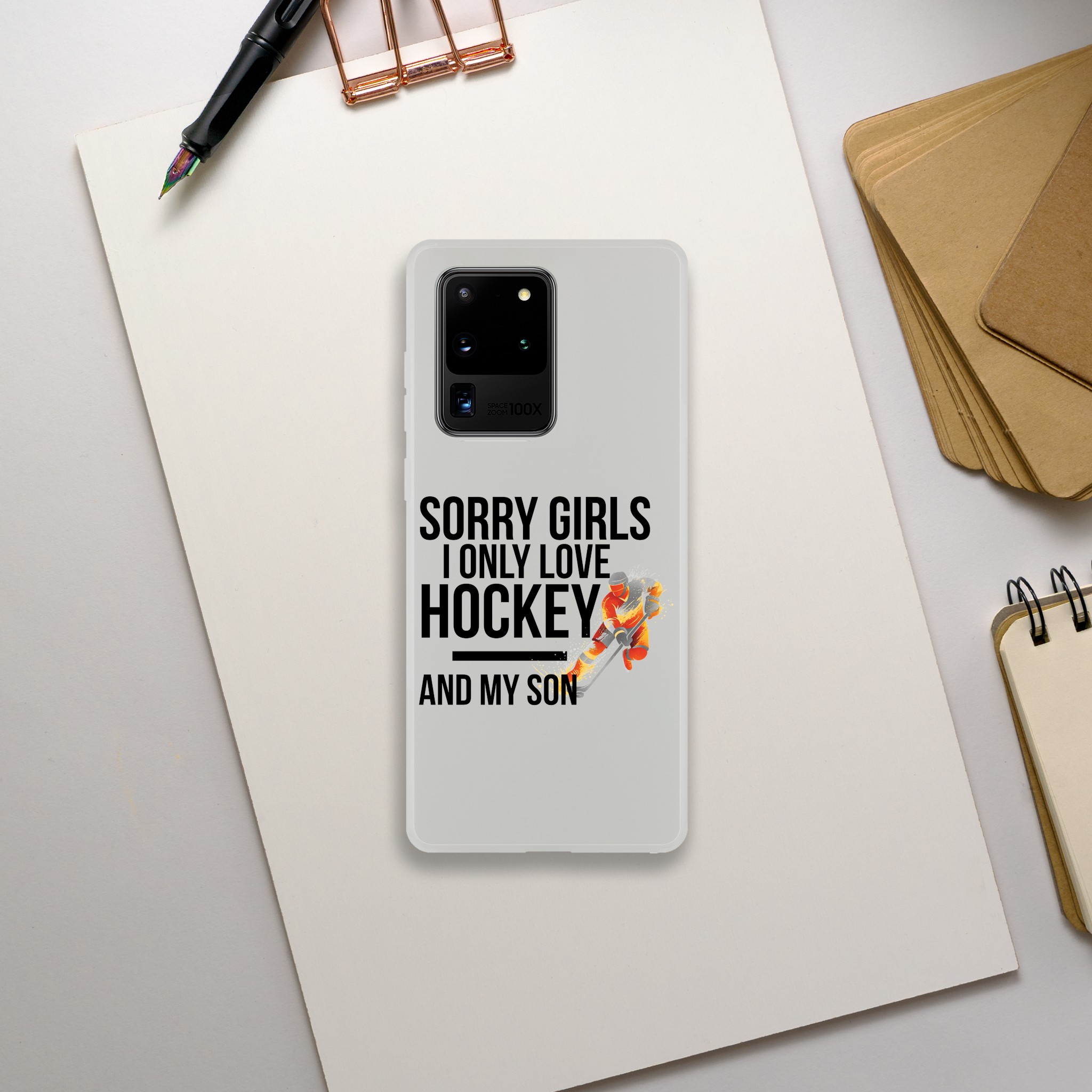 Cette coque Flexi sport personnalisée "Sorry Girls I Only Love Hockey And My Son" est l'accessoire parfait pour mettre en valeur votre téléphone design tout en affichant votre passion. La coque transparente givrée est dotée d'une protection TPU qui offre une résistance aux chocs, tout en laissant transparaître l'esthétique naturelle de votre smartphone.