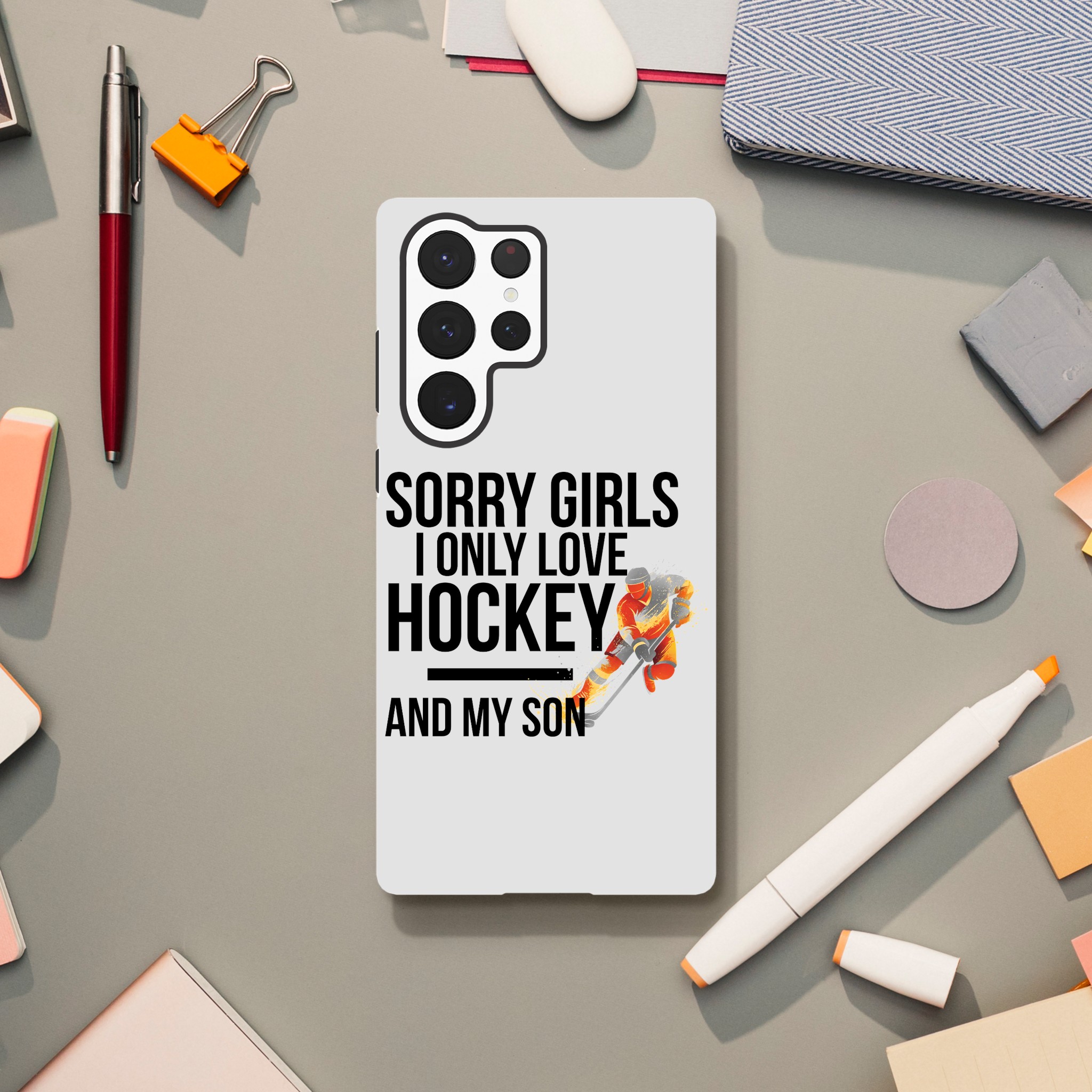 Cette coque sport personnalisée "Sorry Girls I Only Love Hockey And My Son" est l'accessoire parfait pour tous les fans de sport. Conçue spécialement pour les passionnés qui vivent et respirent leur sport favori, cette coque Samsung – Galaxy combine protection exceptionnelle et design exclusif.