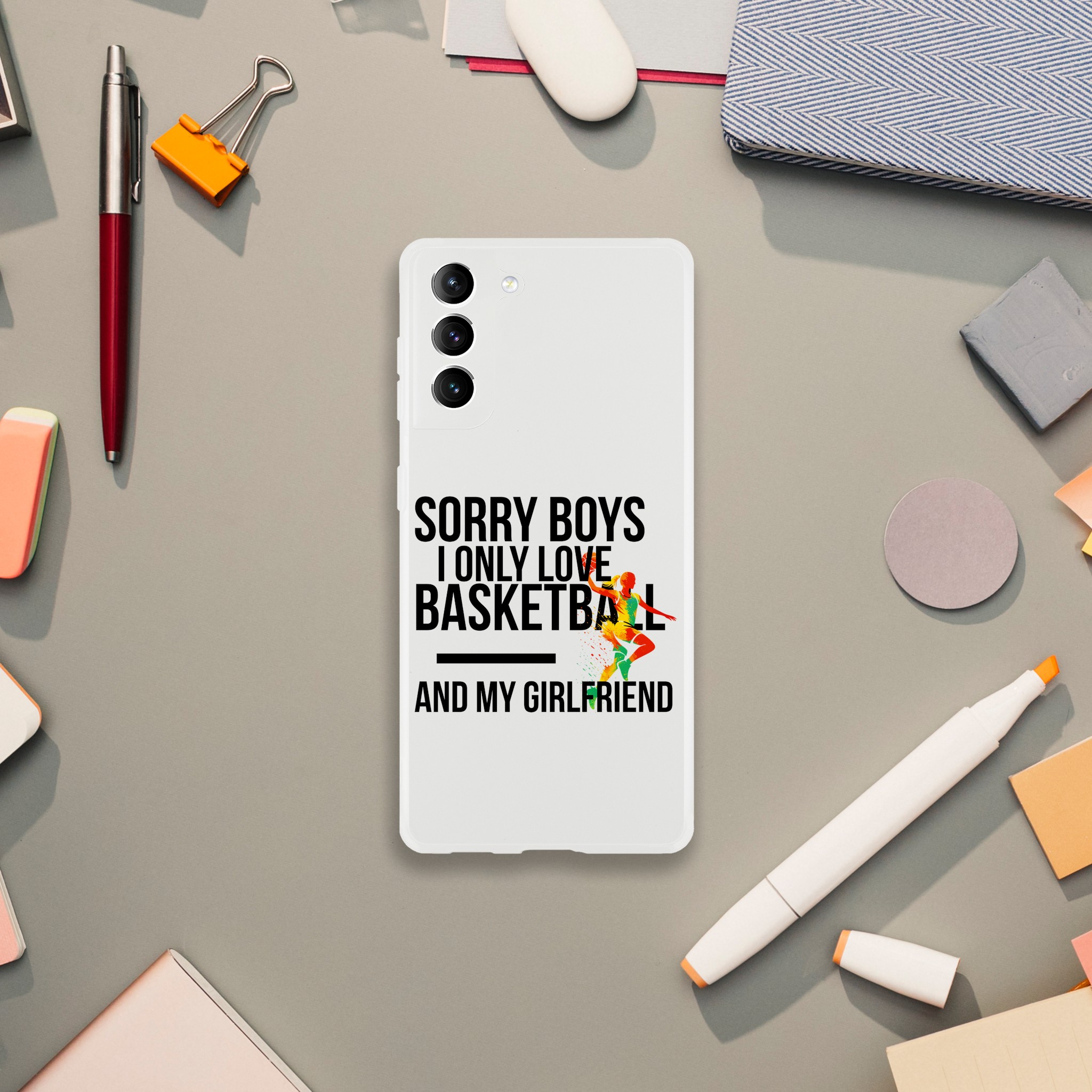 Coque Flexi compatible Samsung « Sorry Boys I Only Love Basketball And My Girlfriend« . Transparente givrée, flexible et résistante.