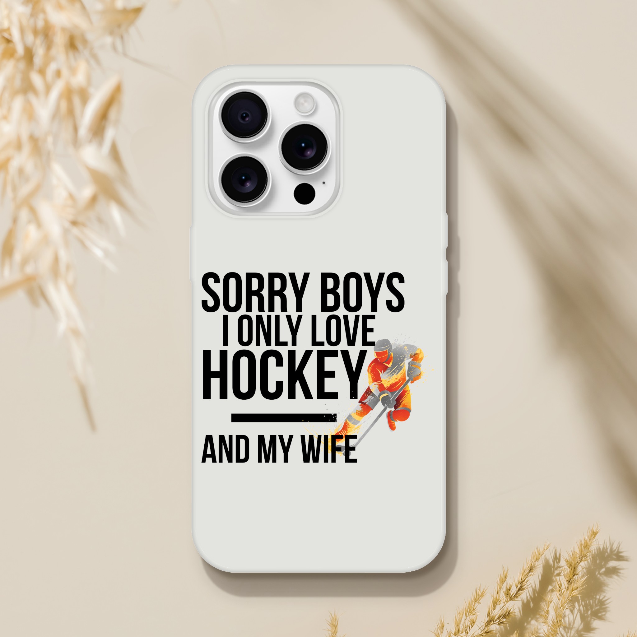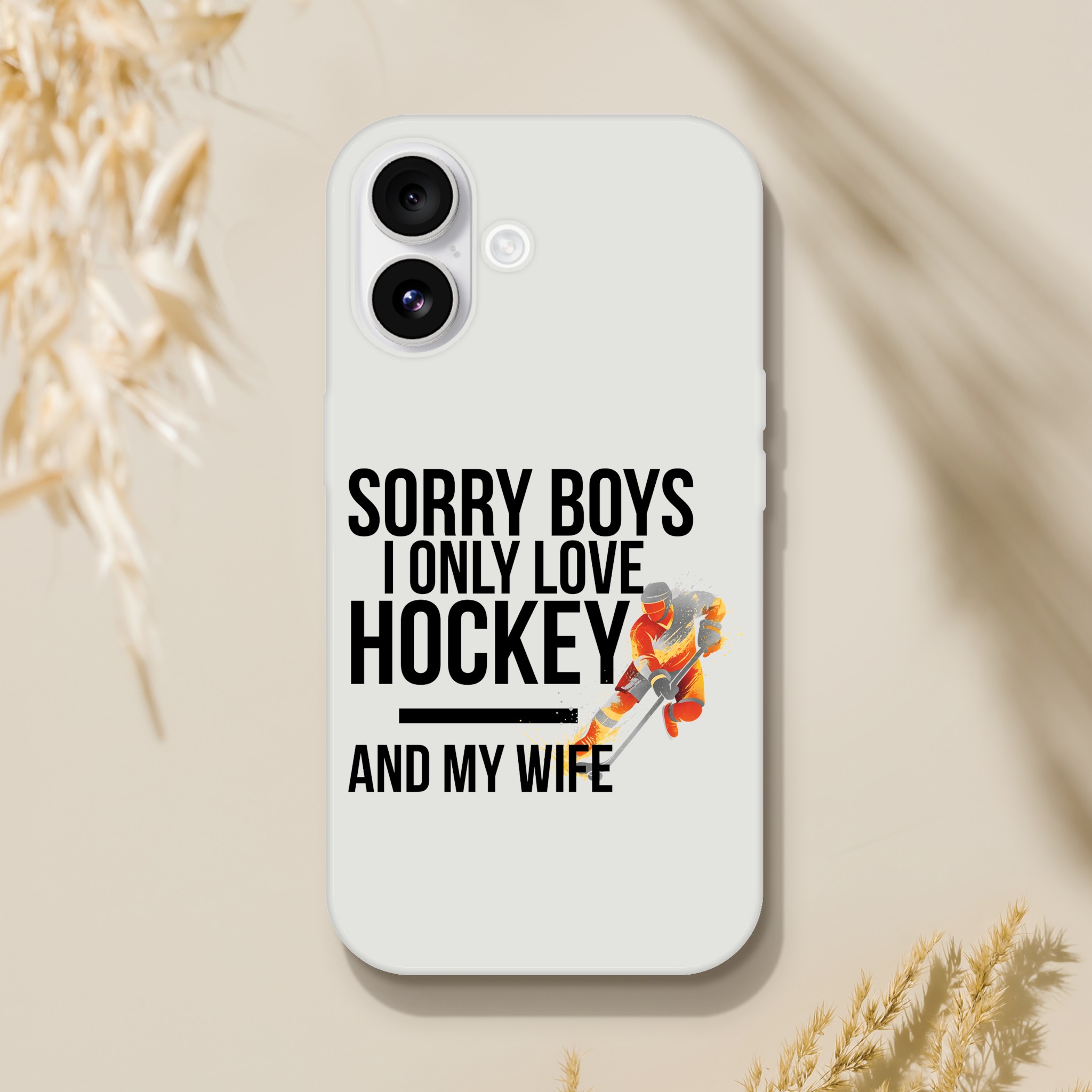 Coque Flexi compatible iPhone « Sorry Boys I Only Love Hockey And My Wife« . Transparente givrée, flexible et résistante.