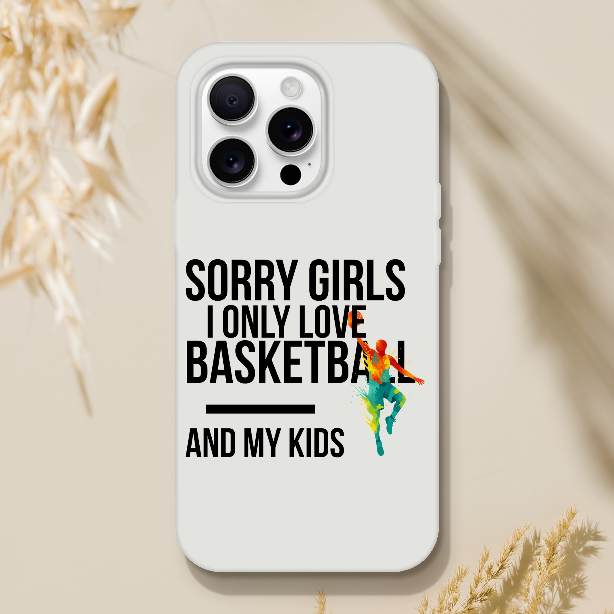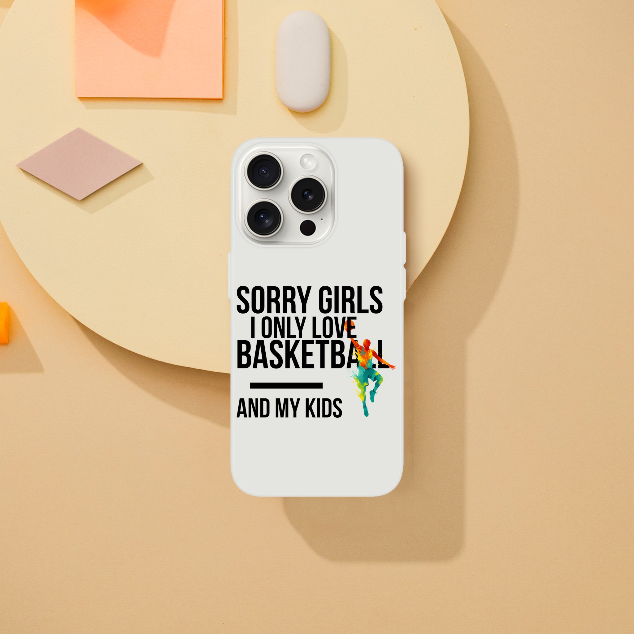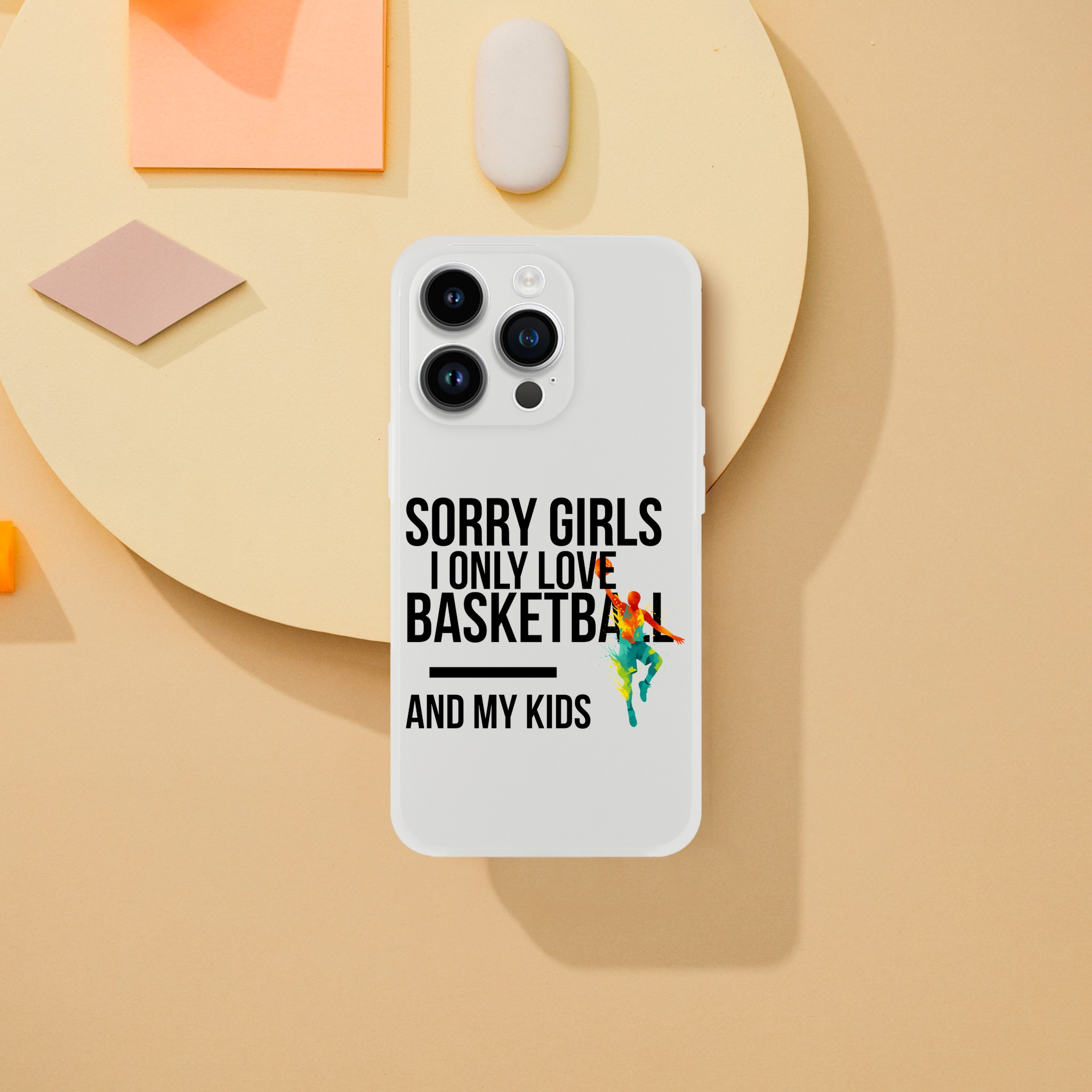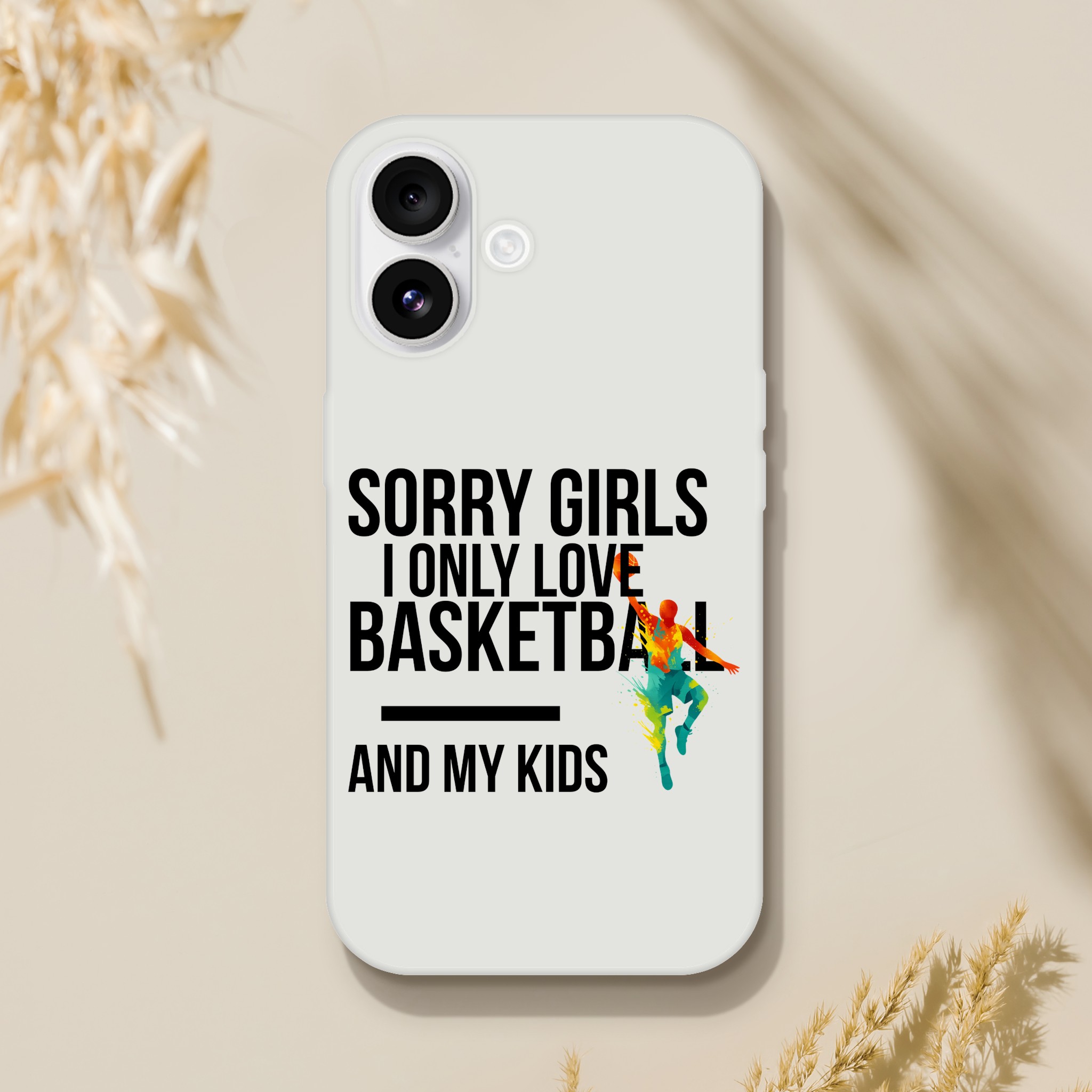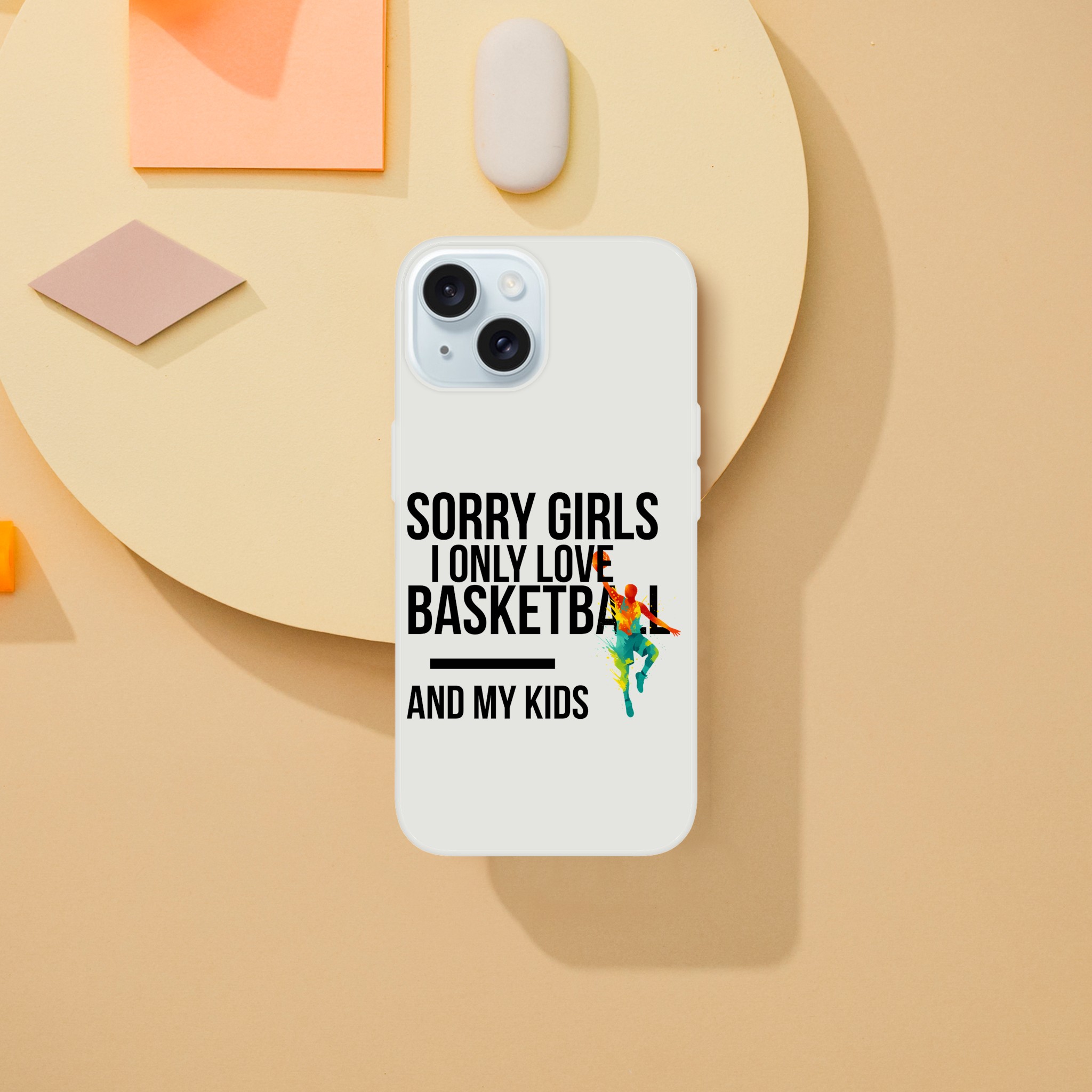 Coque Flexi compatible iPhone « Sorry Girls I Only Love Basketball And My Kids« . Transparente givrée, flexible et résistante.