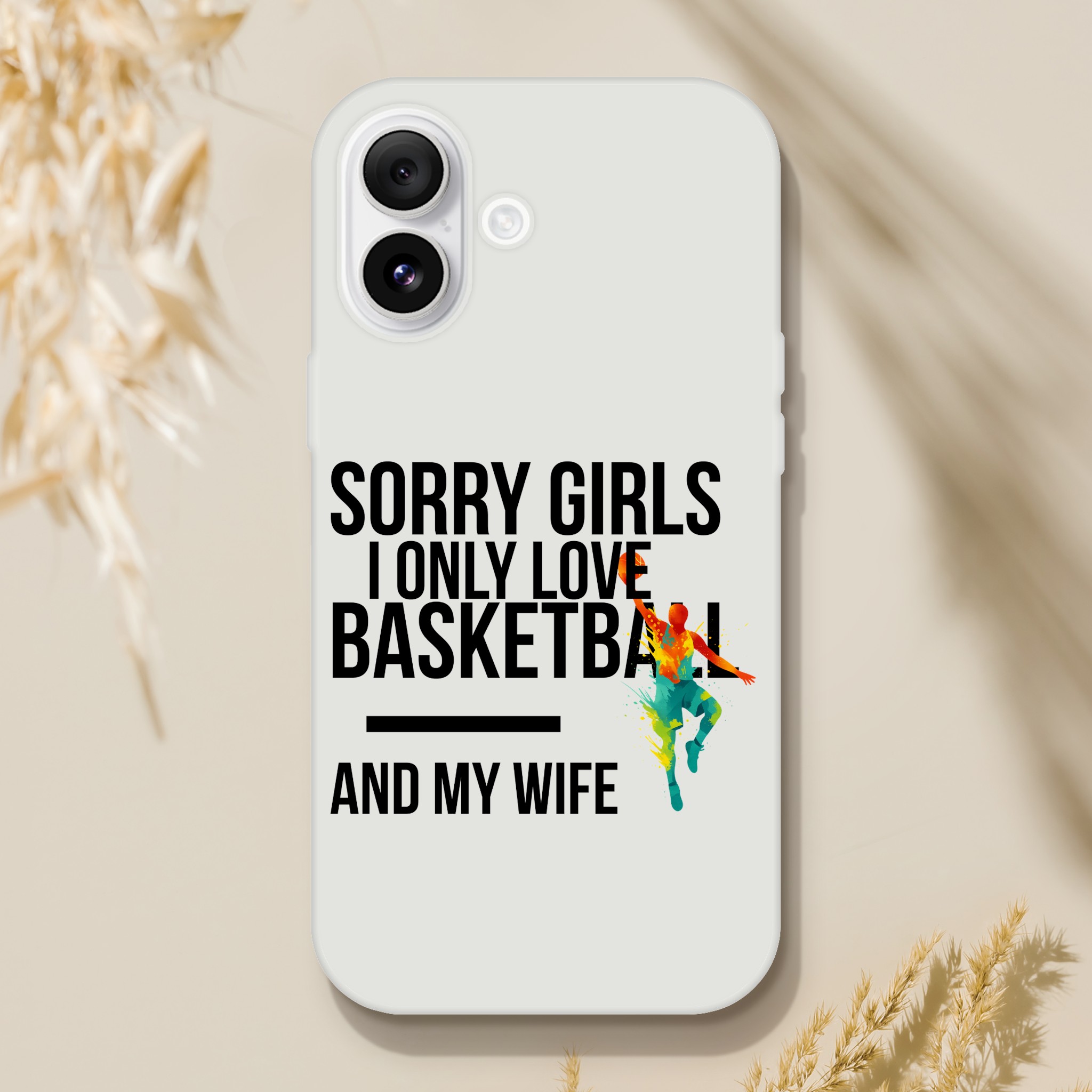 Coque Flexi compatible iPhone « Sorry Girls I Only Love Basketball And My Wife« . Transparente givrée, flexible et résistante.