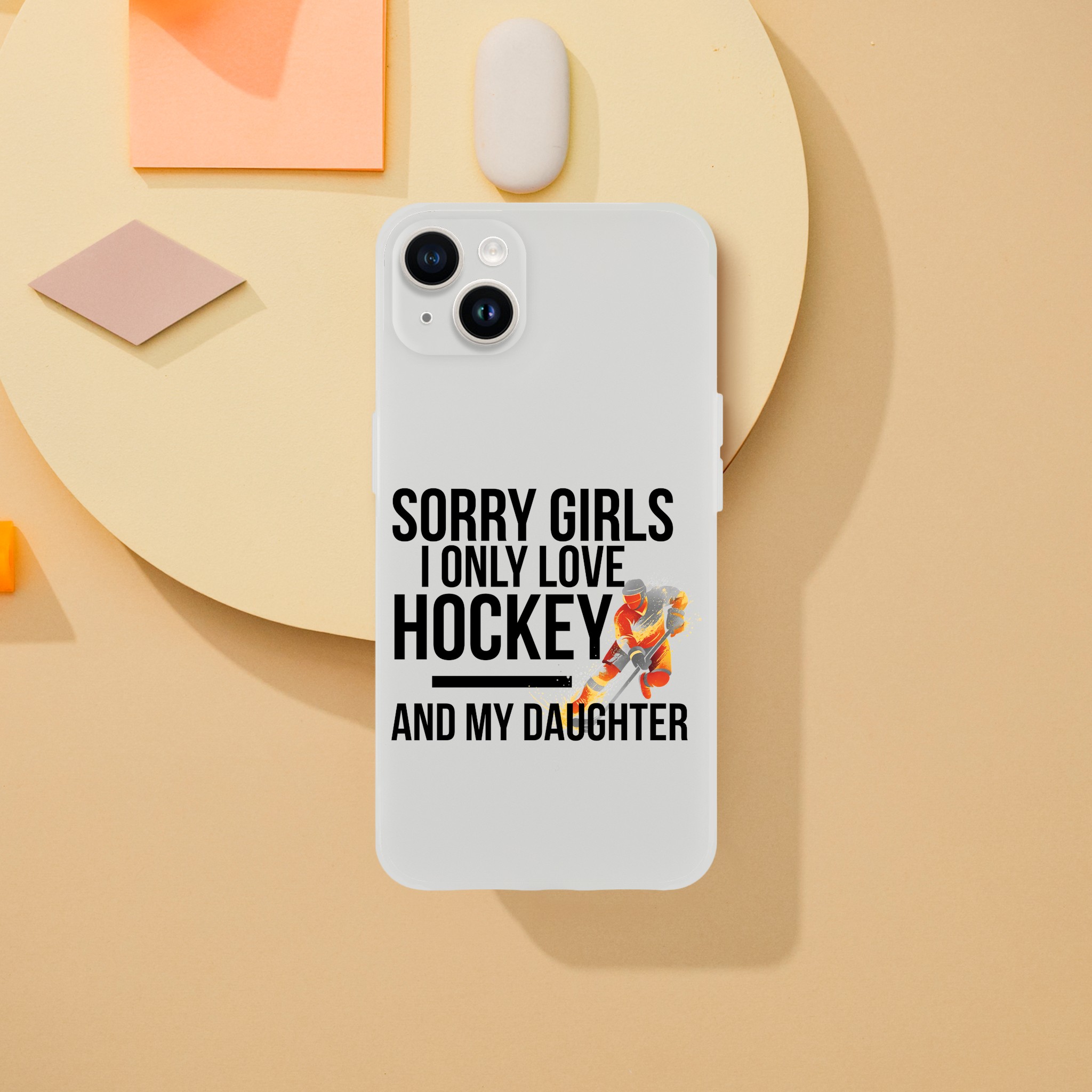 Coque Hockey Daughter exclusive « Sorry Girls I Only Love Hockey And My Daughter ». Protection double couche élégante pour passionnés. Compatible iPhone.