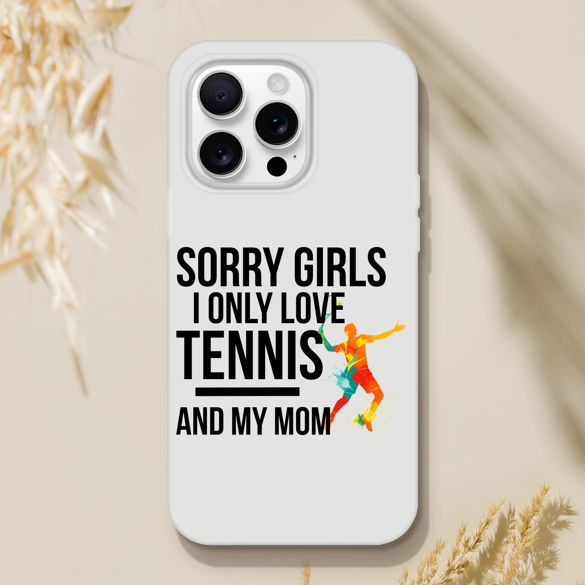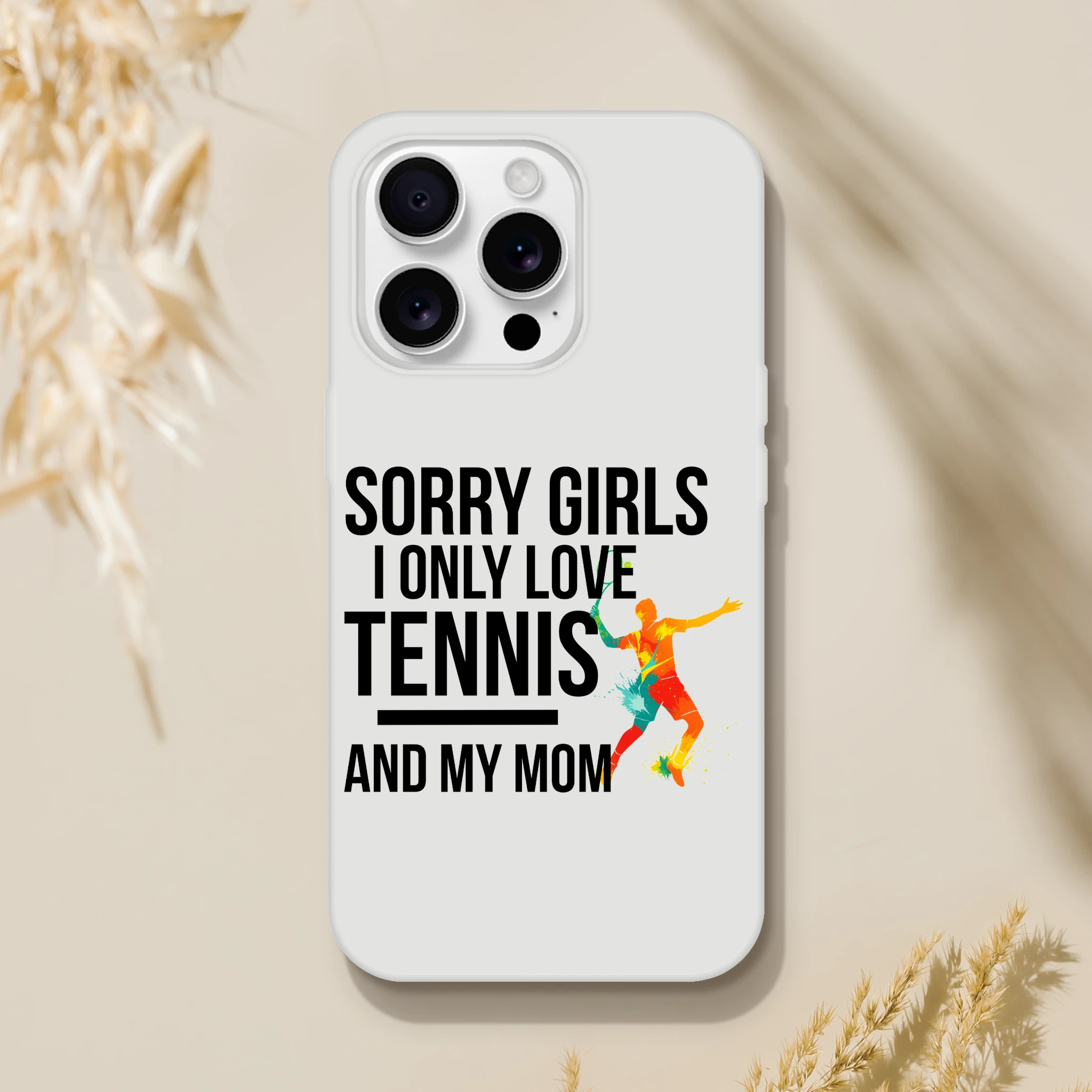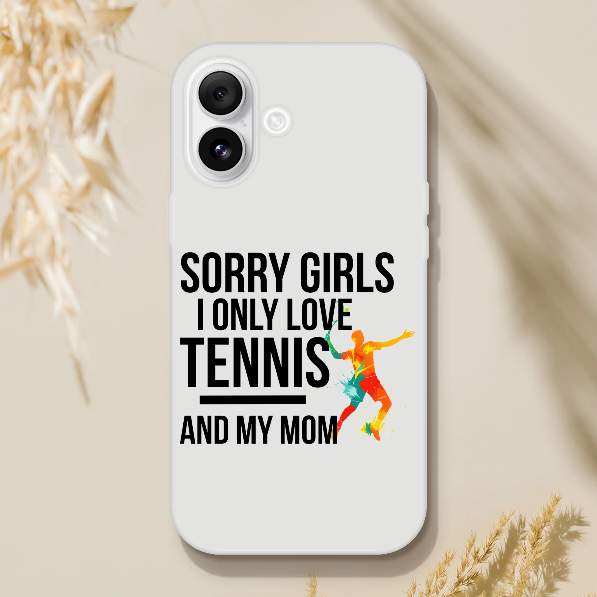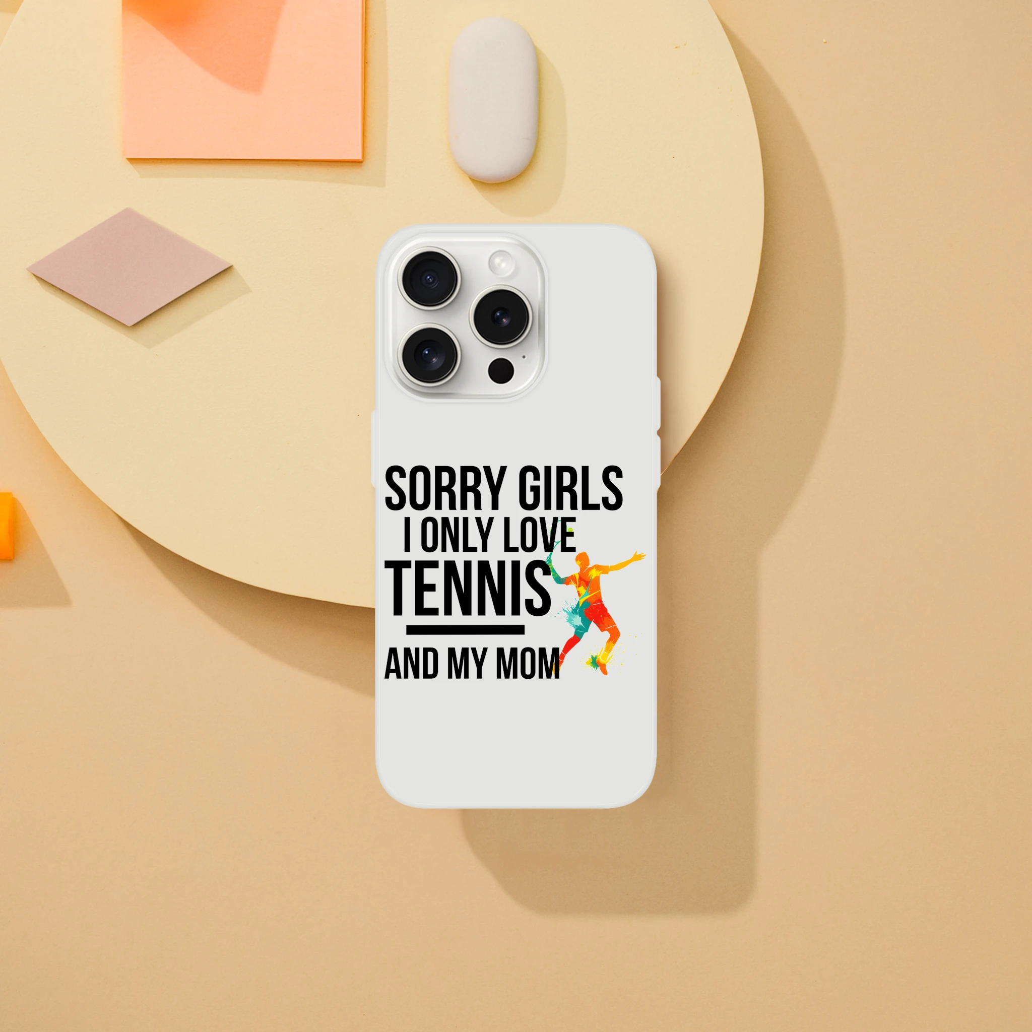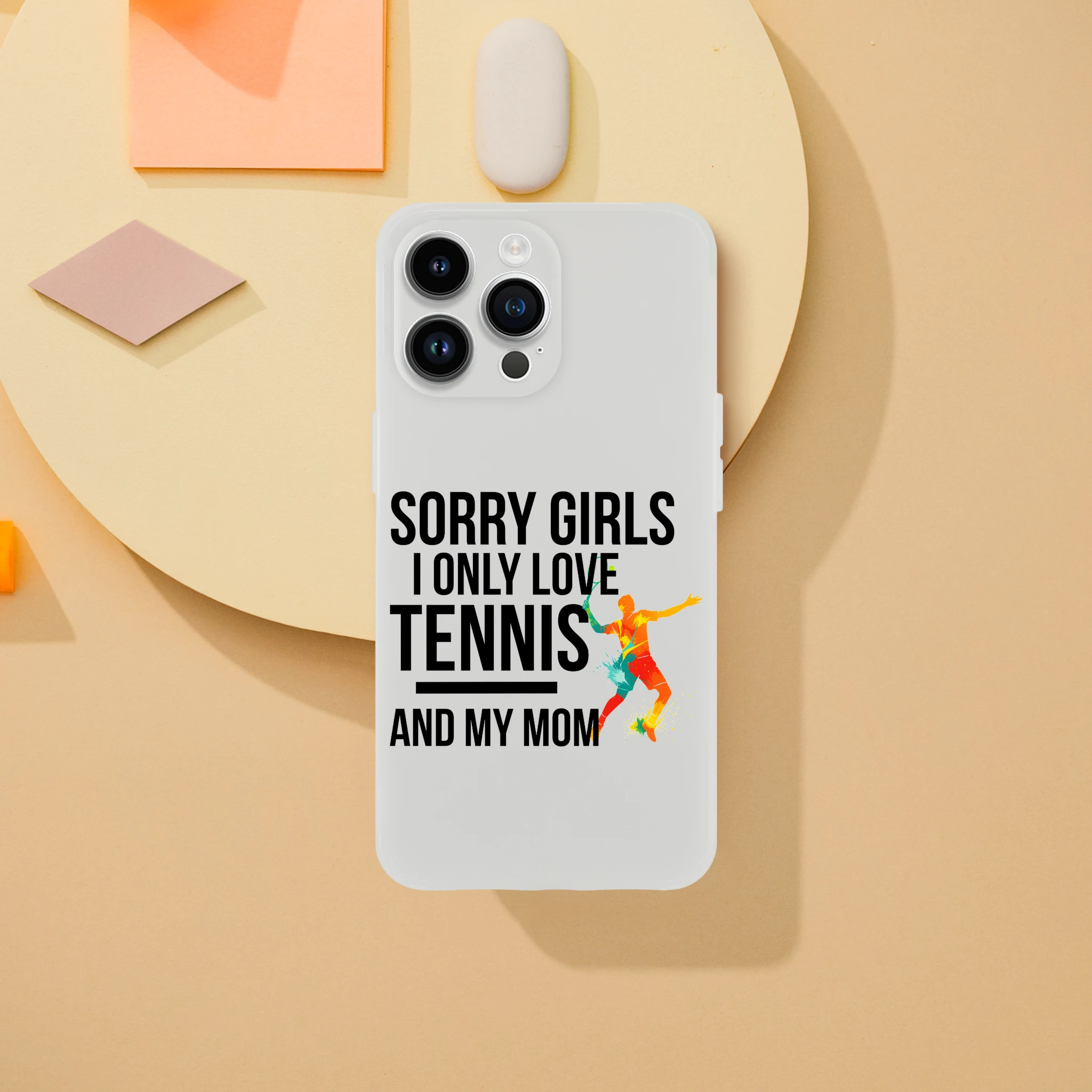 Coque Flexi compatible iPhone « Sorry Girls I Only Love Tennis And My Mom« . Transparente givrée, flexible et résistante.