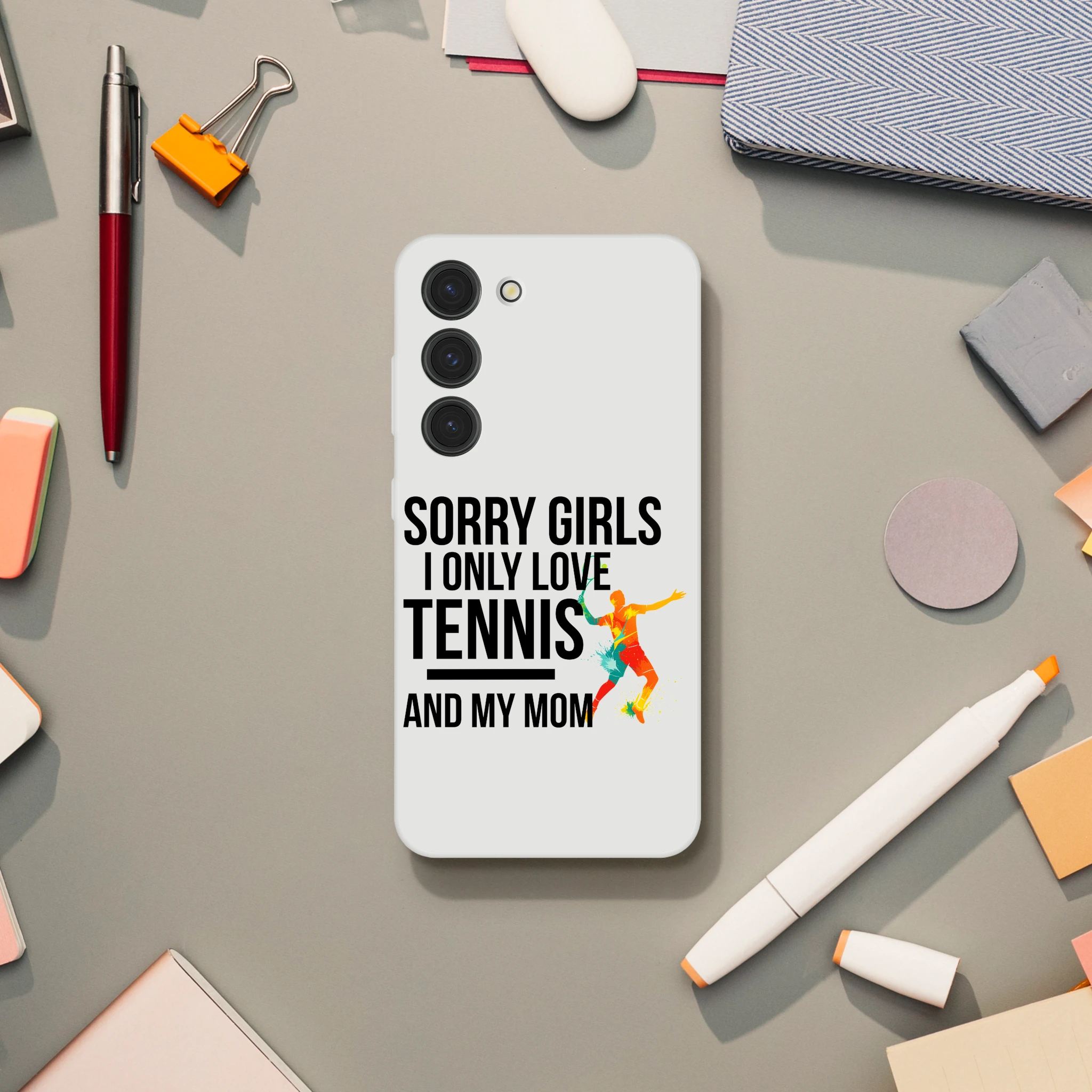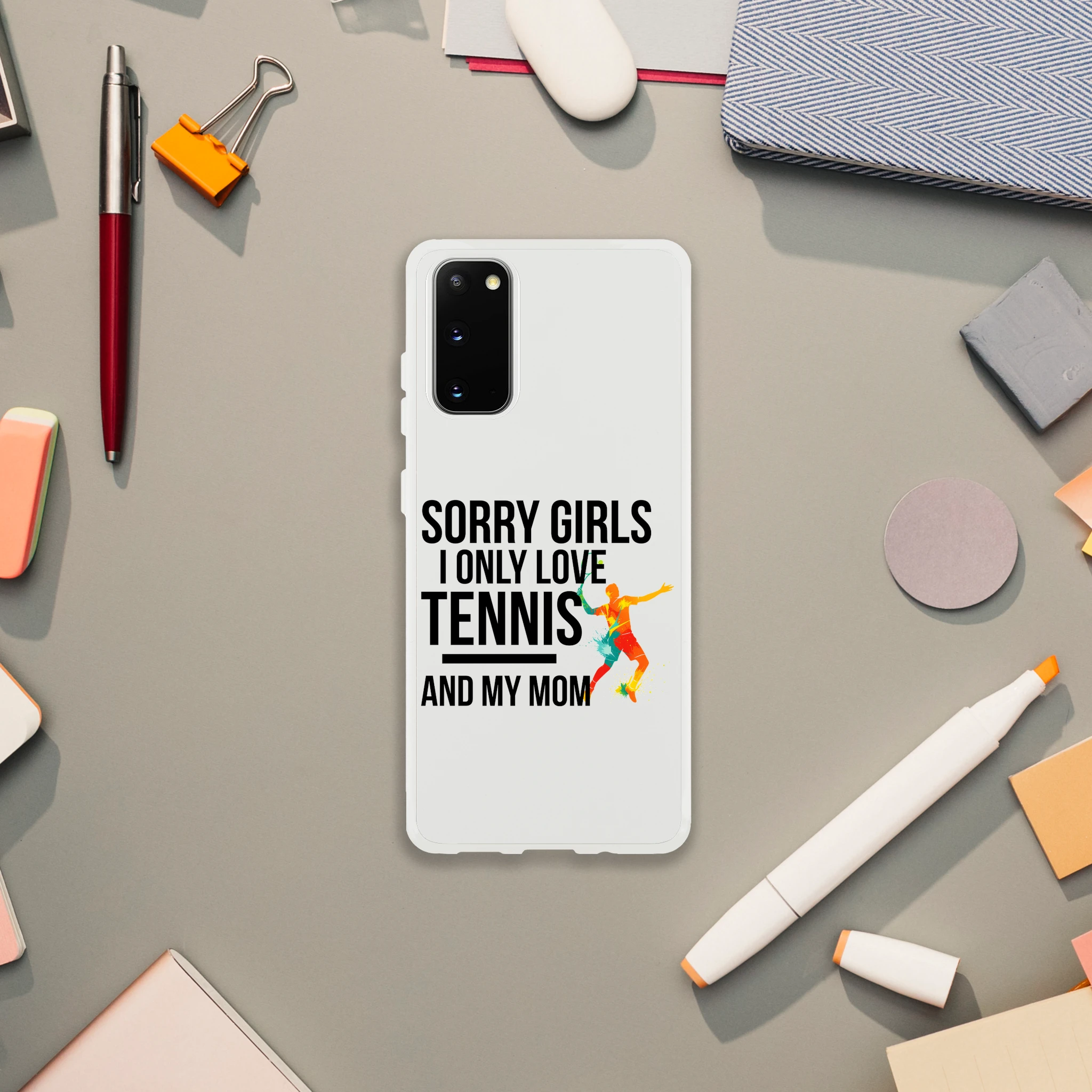 Coque Flexi compatible Samsung « Sorry Girls I Only Love Tennis And My Mom« . Transparente givrée, flexible et résistante.