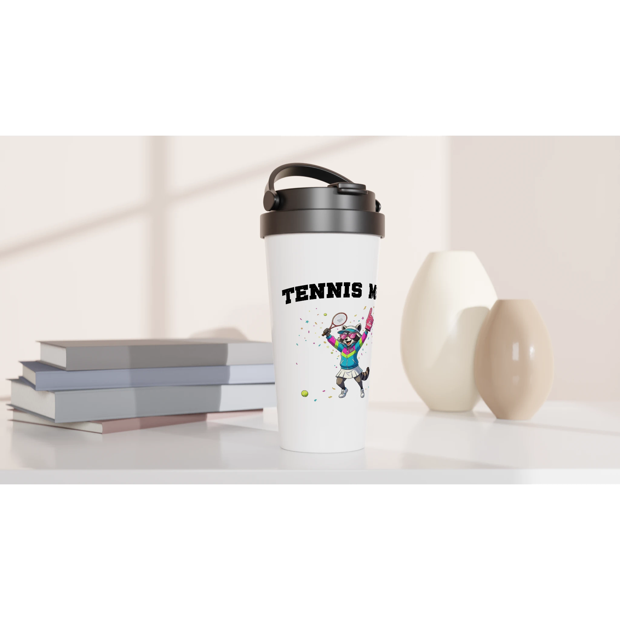 T’es là à 7h du matin au bord du court. T’es une Tennis Mom. Ce mug de voyage Tennis Mom t’accompagne à chaque déplacement. Acier inoxydable 443 ml, couvercle étanche, compatible lave-vaisselle. CHF 27.-.