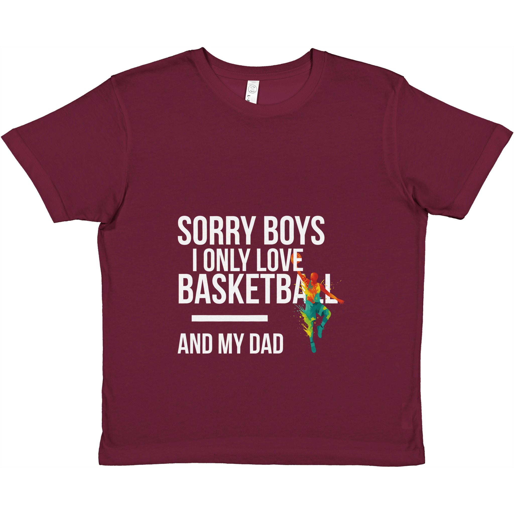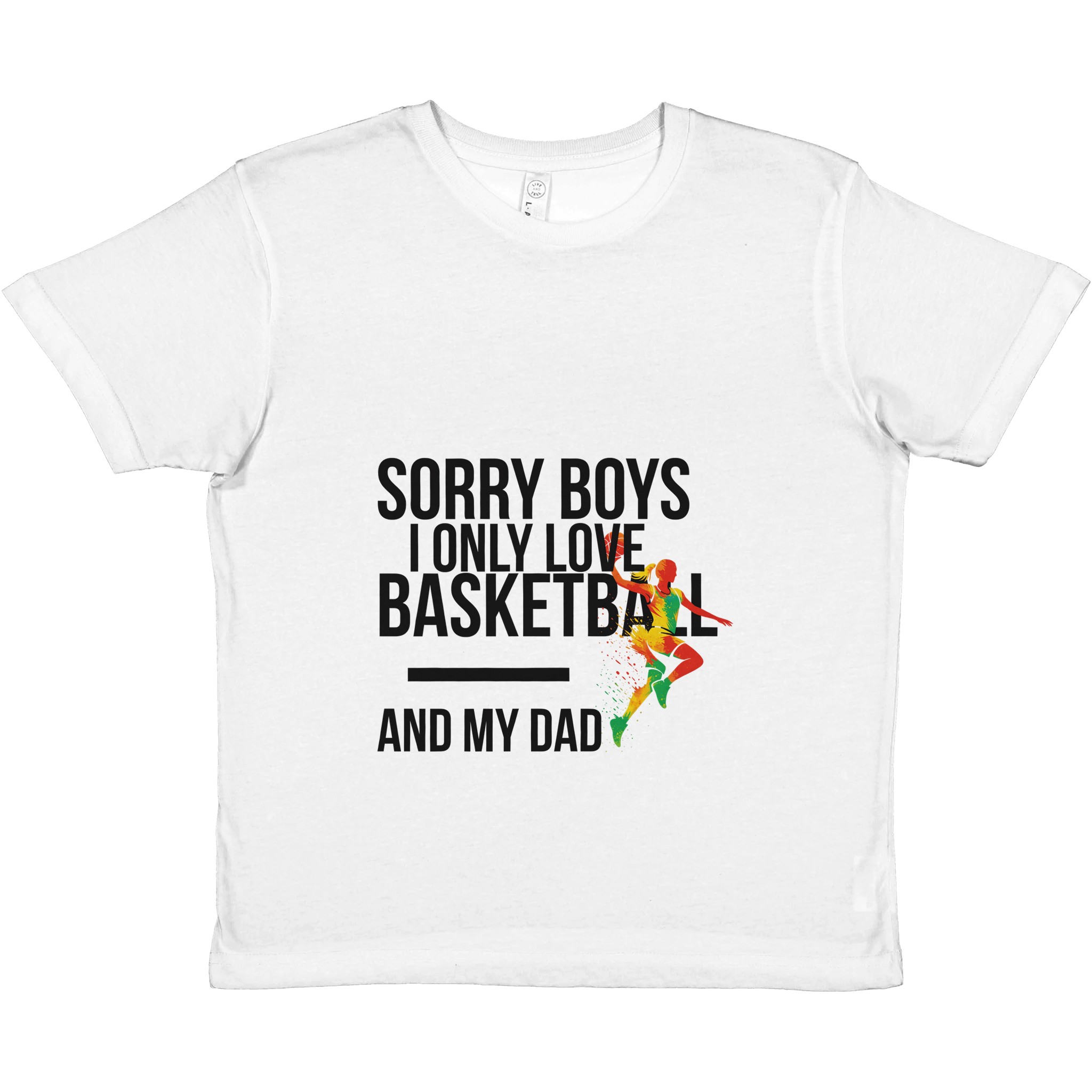 T-shirt enfant sport personnalisé « Sorry Boys I Only Love Basketball And My Dad« . Col ras du cou classique, ajustement parfait et douceur premium pour usage quotidien.