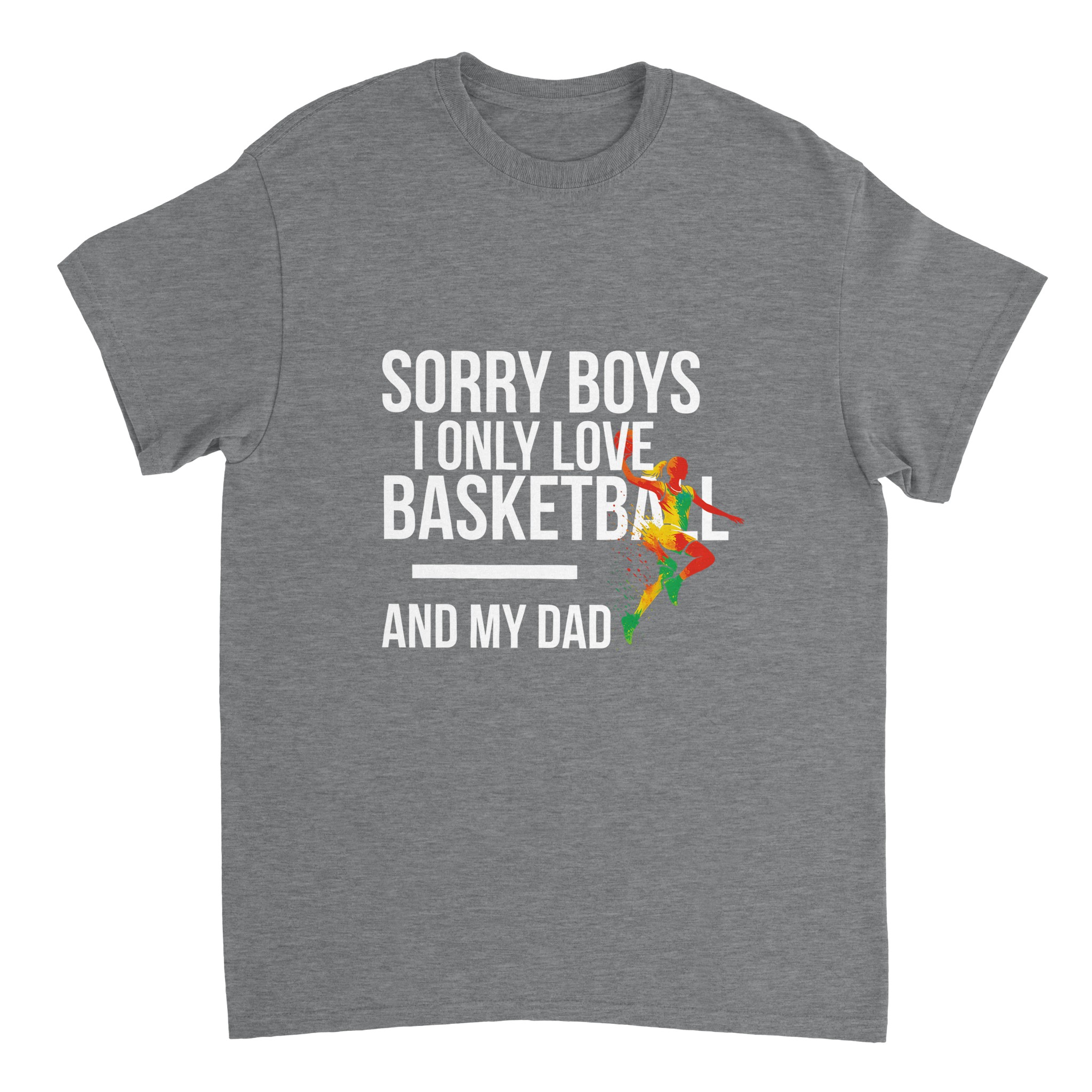 T-shirt personnalisé Gildan 5000 « Sorry Boys I Only Love Basketball And My Dad« . Coton épais 100% durable, coupe classique unisexe. L’incontournable des t-shirts personnalisés.