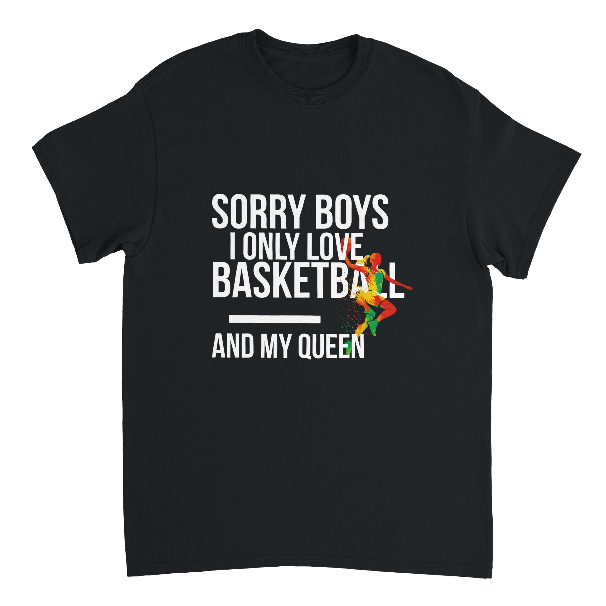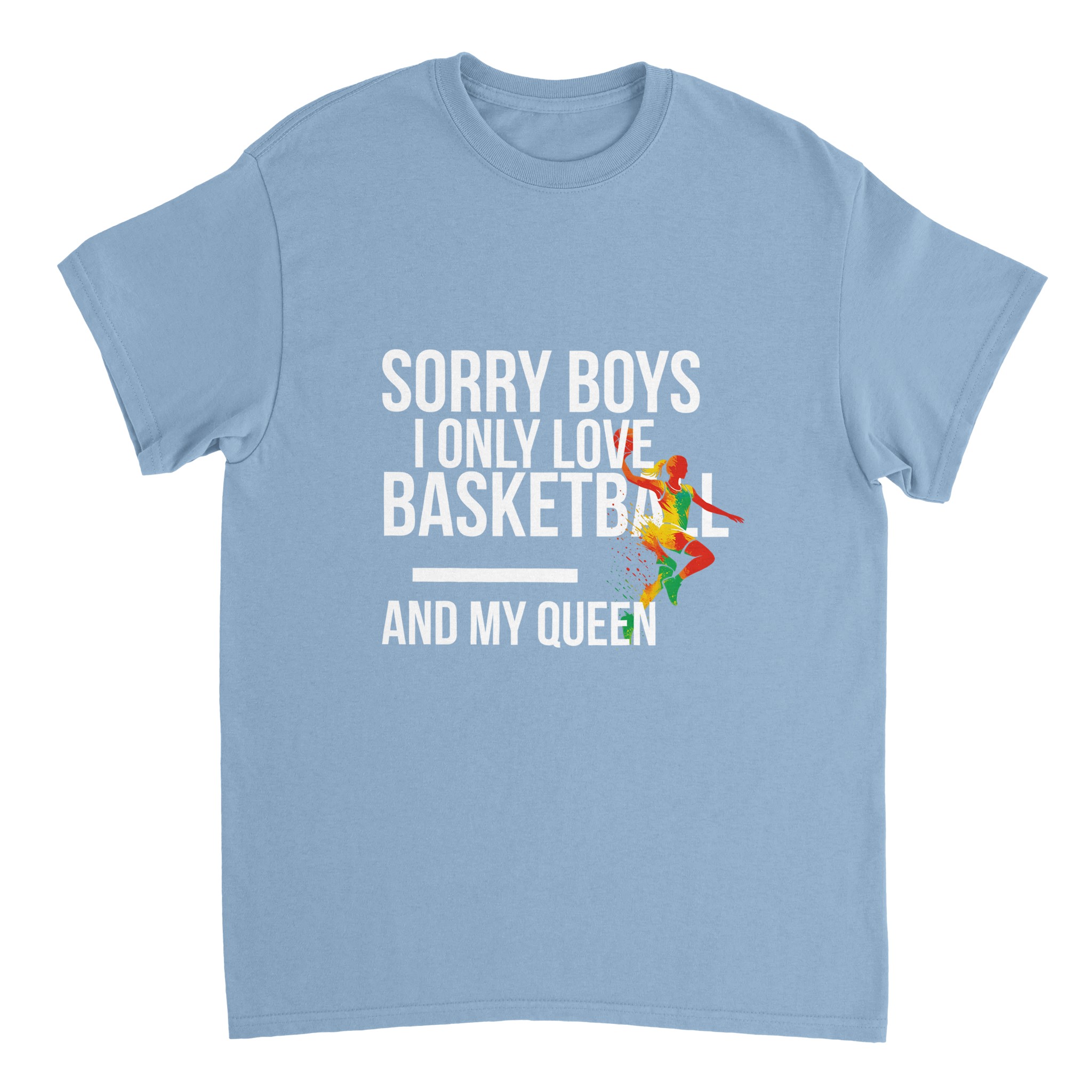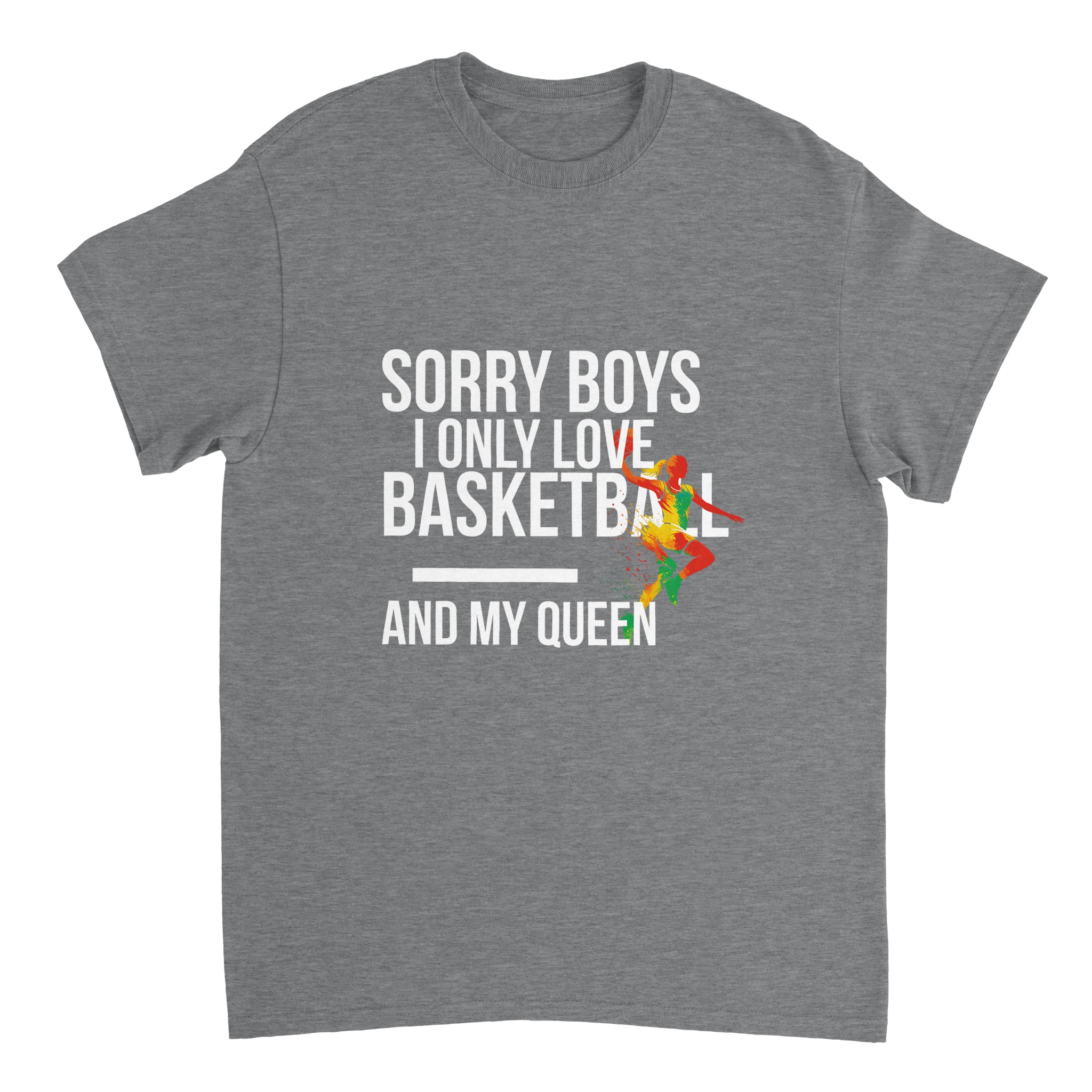 T-shirt personnalisé Gildan 5000 « Sorry Boys I Only Love Basketball And My Queen« . Coton épais 100% durable, coupe classique unisexe. L’incontournable des t-shirts personnalisés.