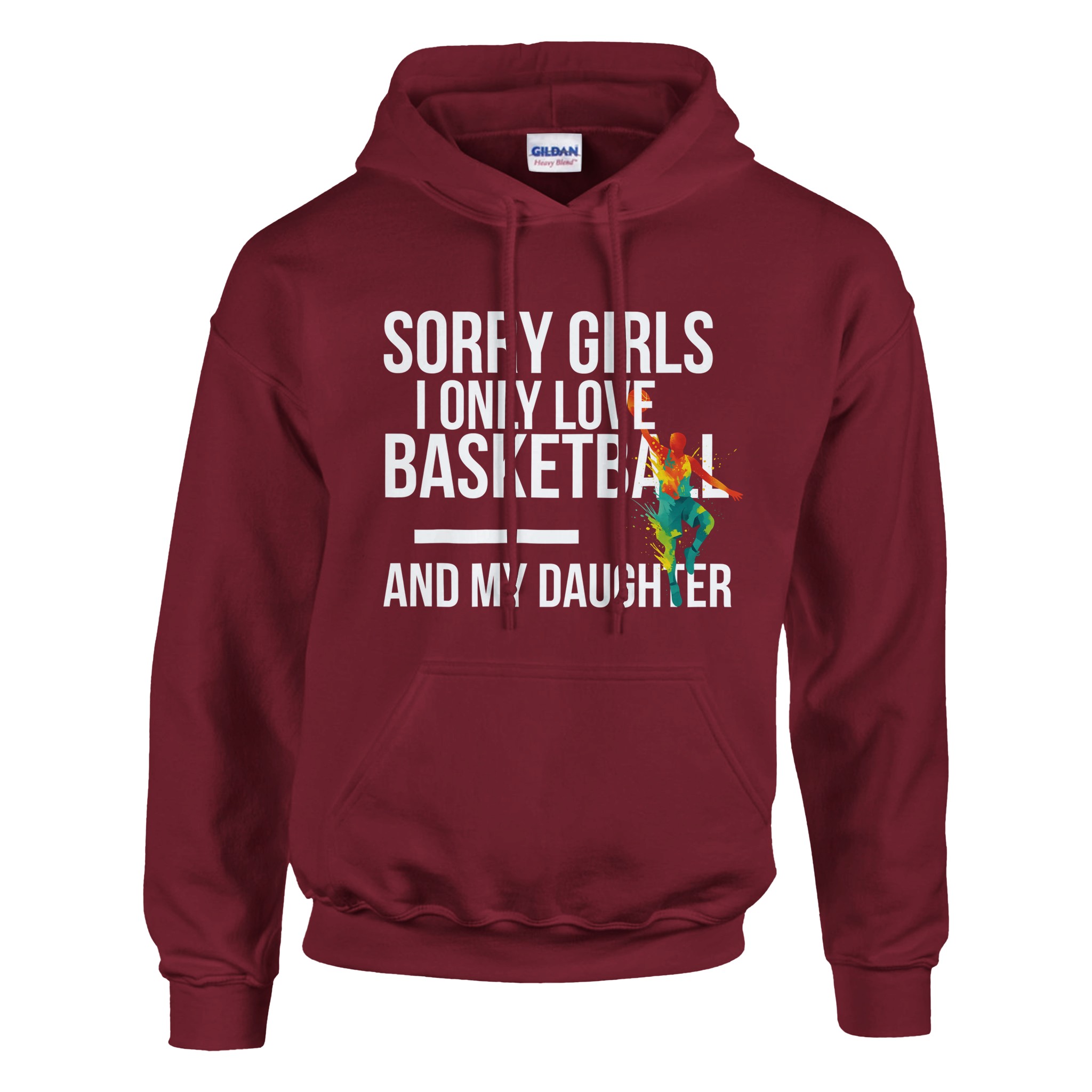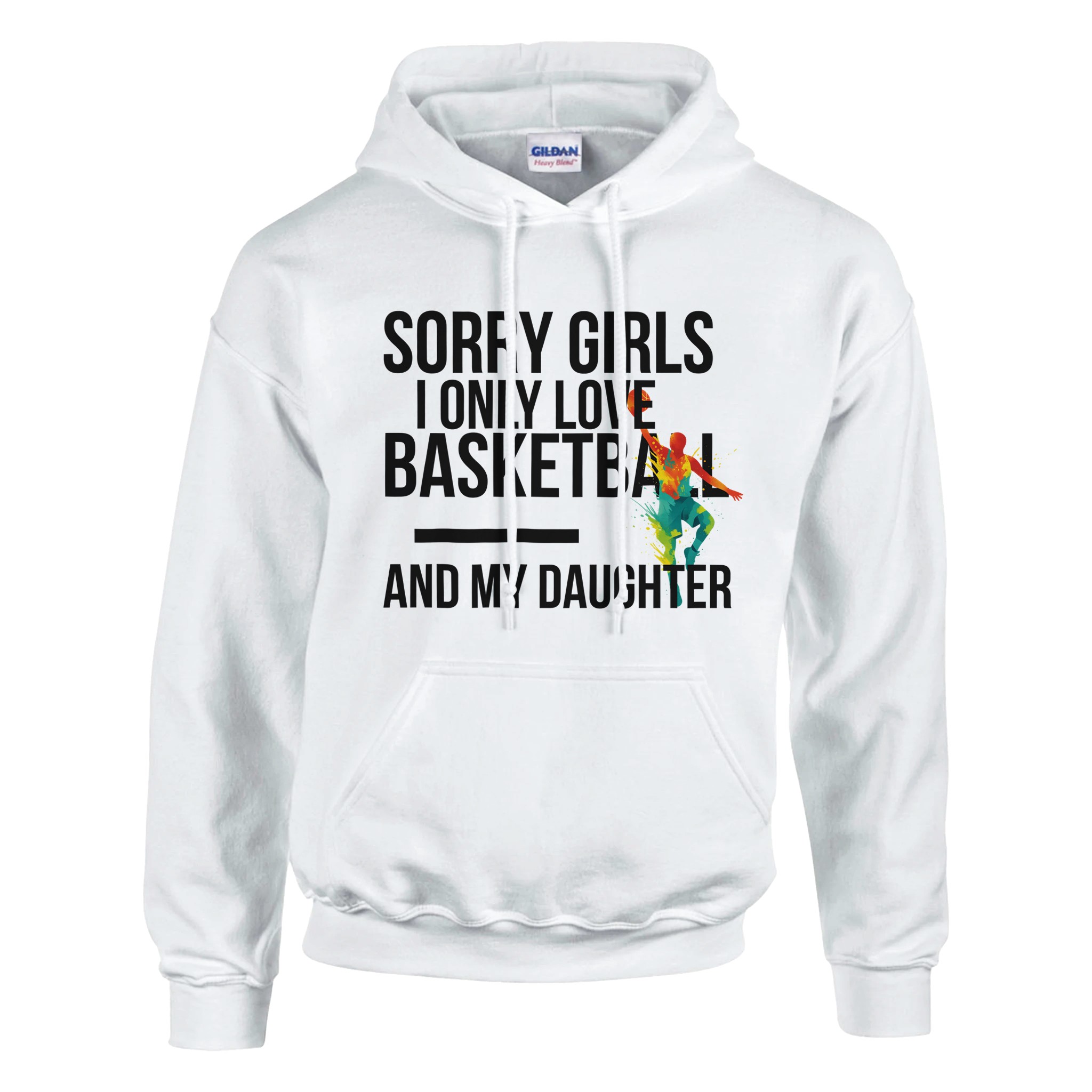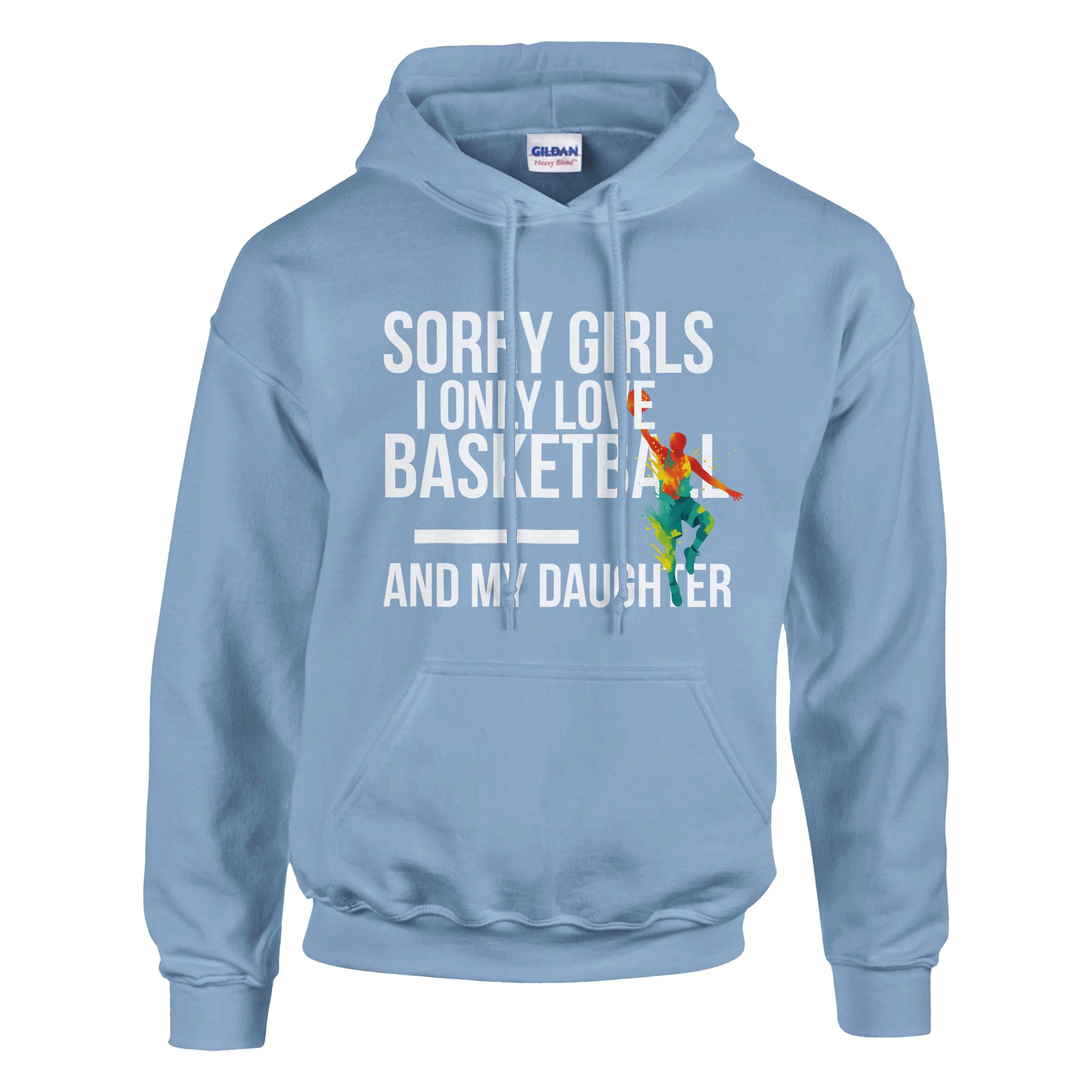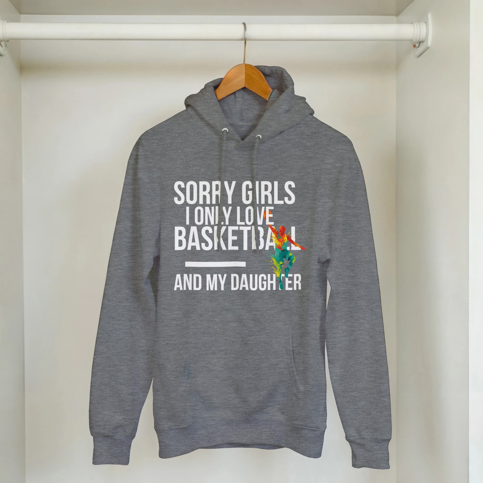 Sweat à capuche sport personnalisé « Sorry Girls I Only Love Basketball And My Daughter« . Mélange coton/polyester épais, capuche doublée avec cordon, poche ventrale, confort optimal.