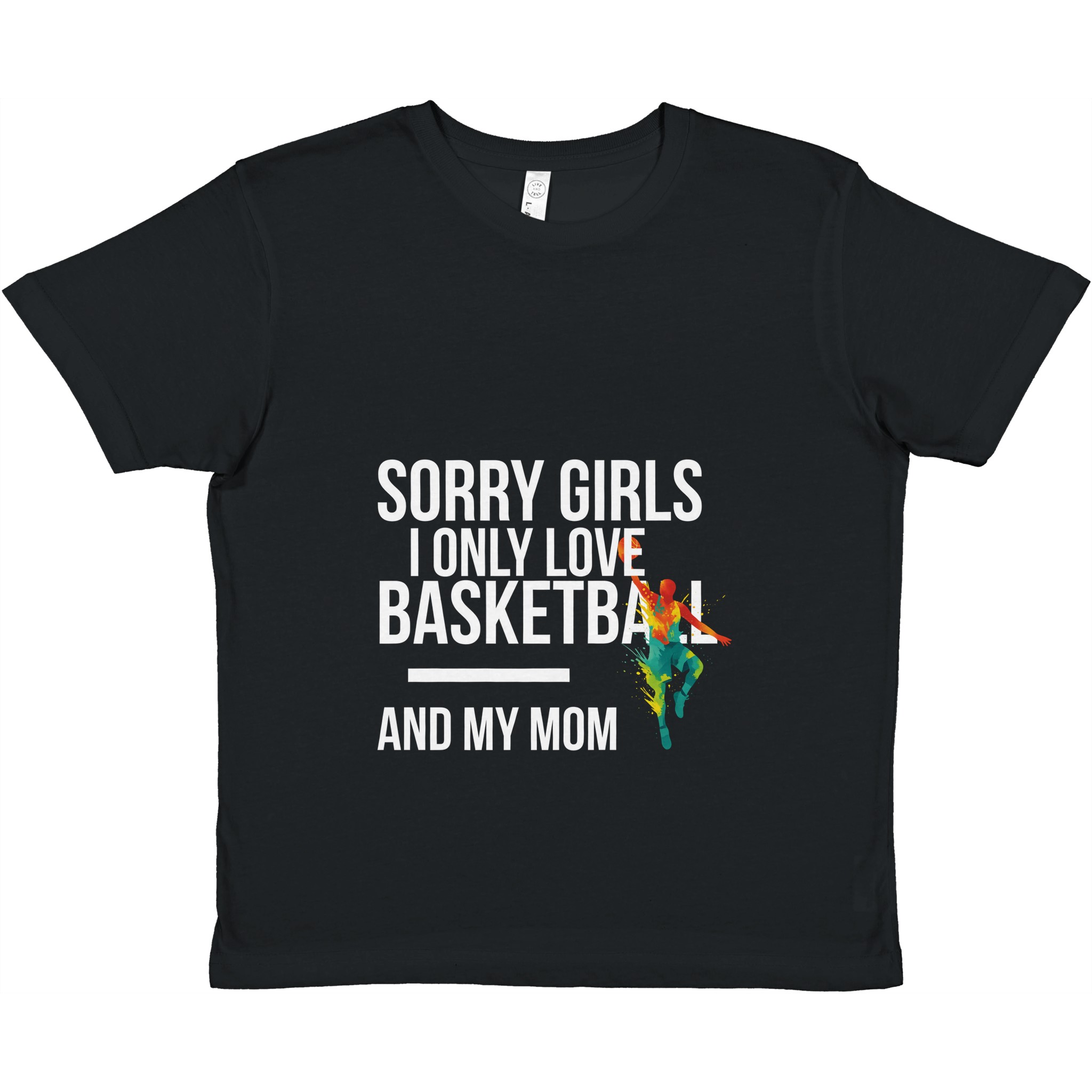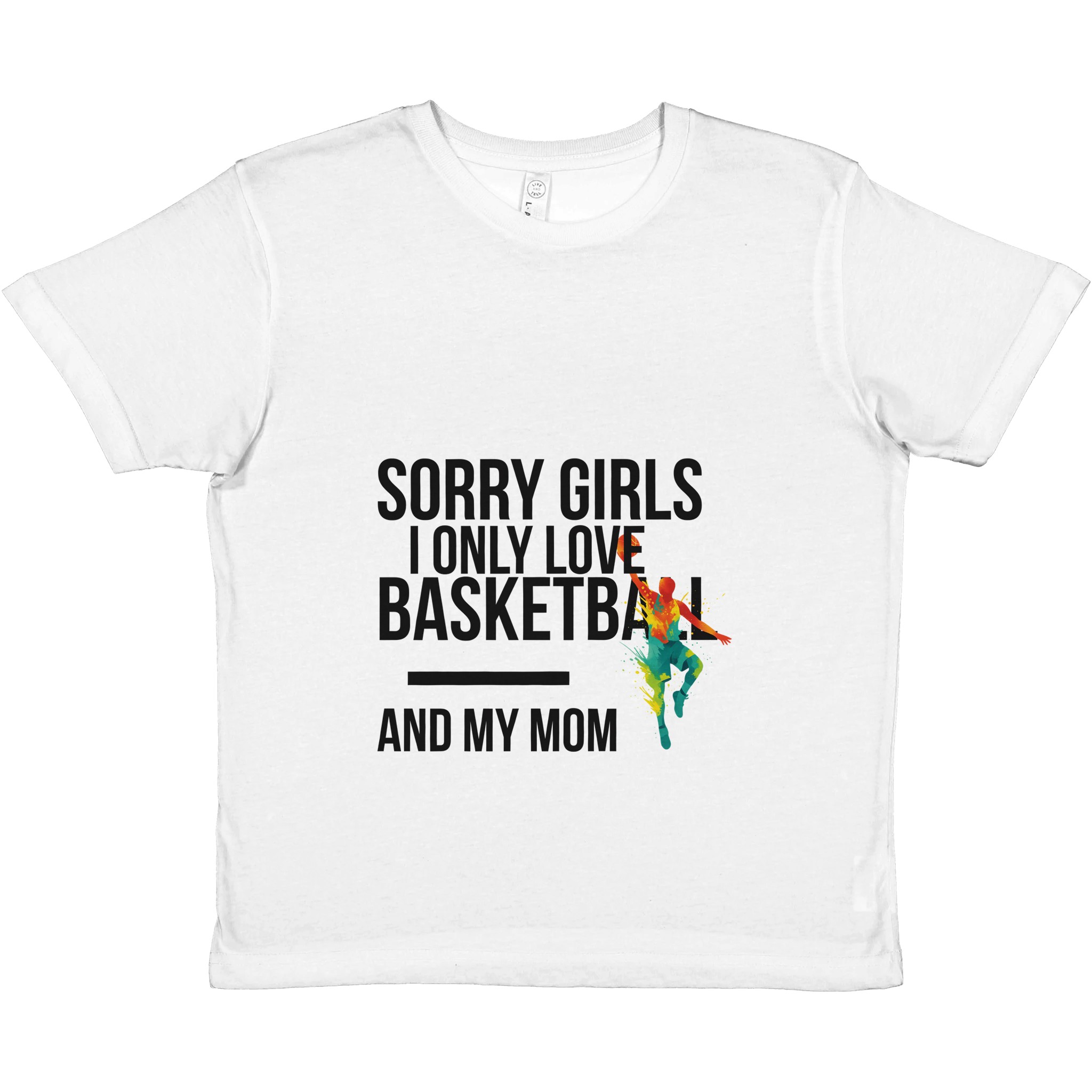 T-shirt enfant sport personnalisé « Sorry Girls I Only Love Basketball And My Mom« . Col ras du cou classique, ajustement parfait et douceur premium pour usage quotidien.