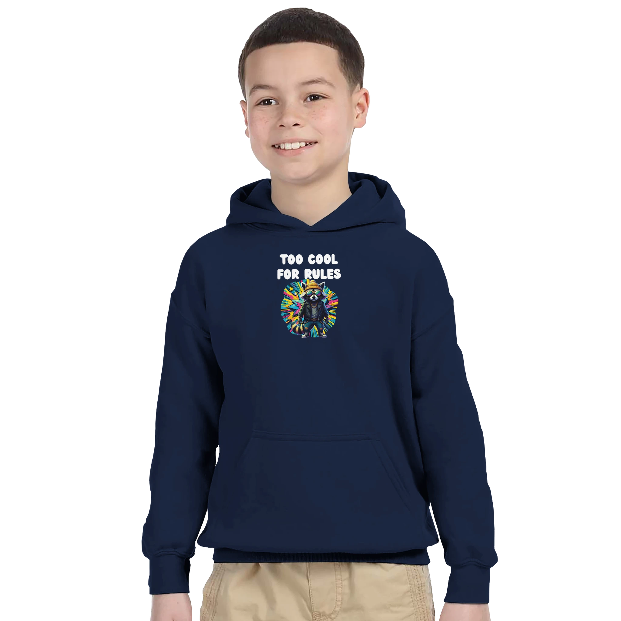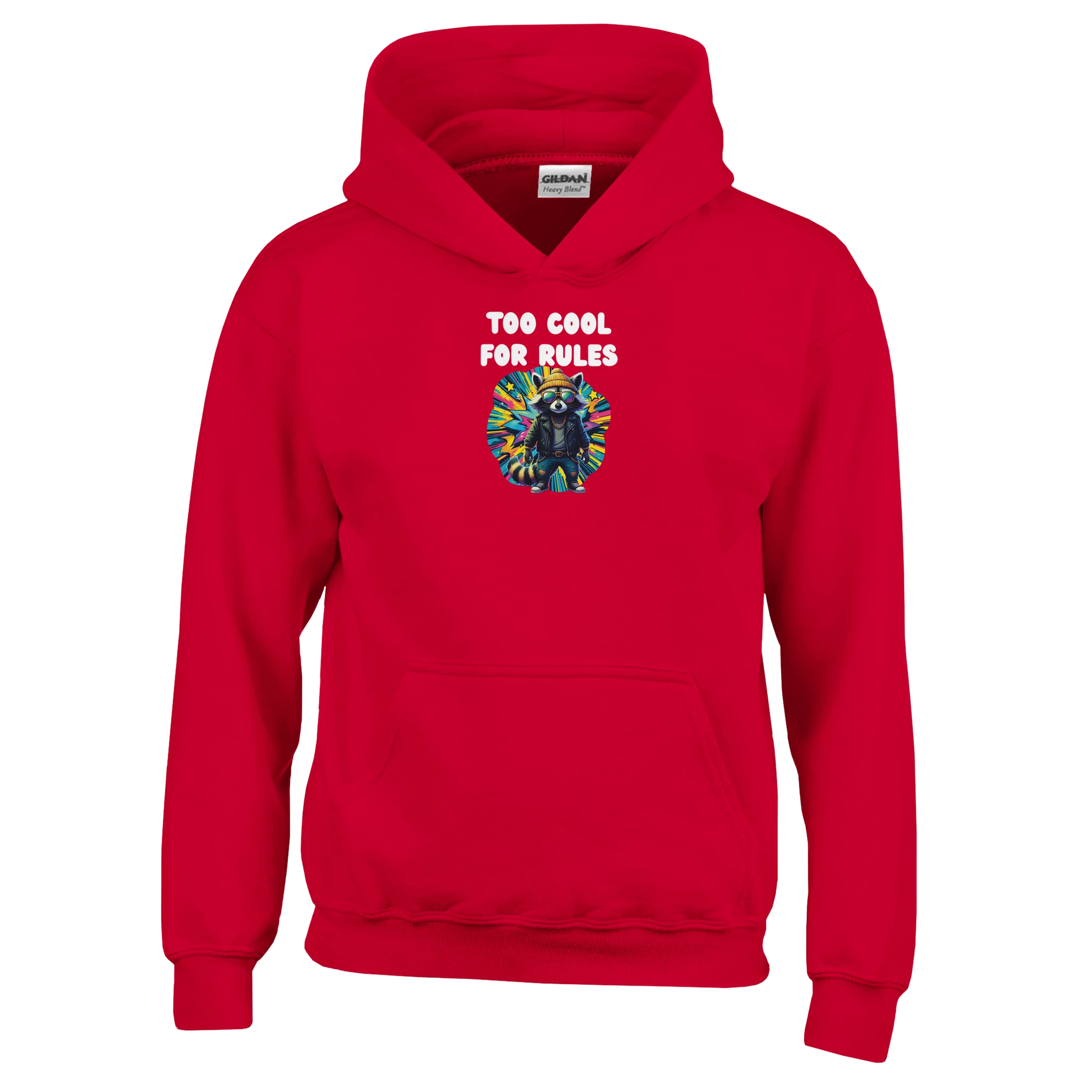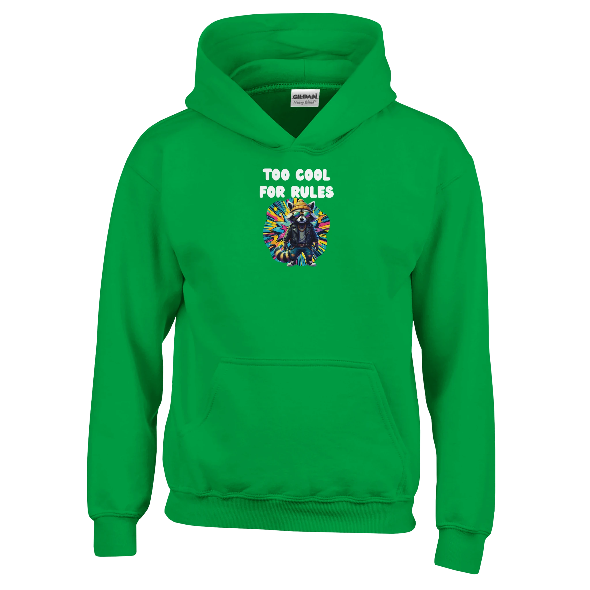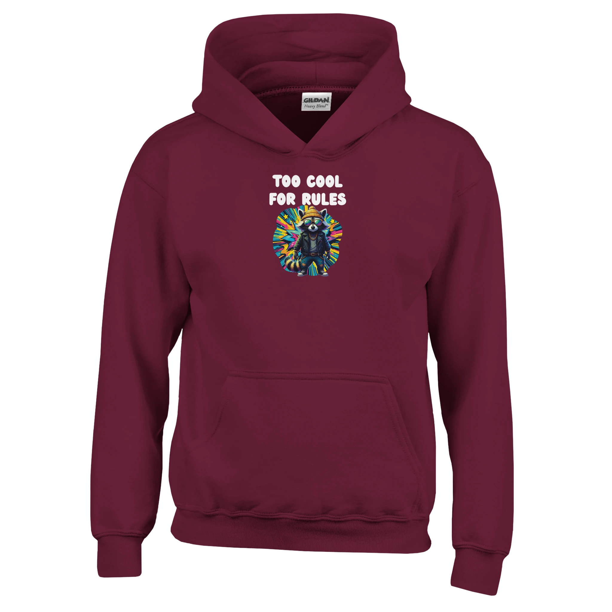Sweat à capuche enfant sport personnalisé « Too Cool For Rules« . Gildan 18500B épais, mélange coton/polyester doux, capuche doublée, poche ventrale.