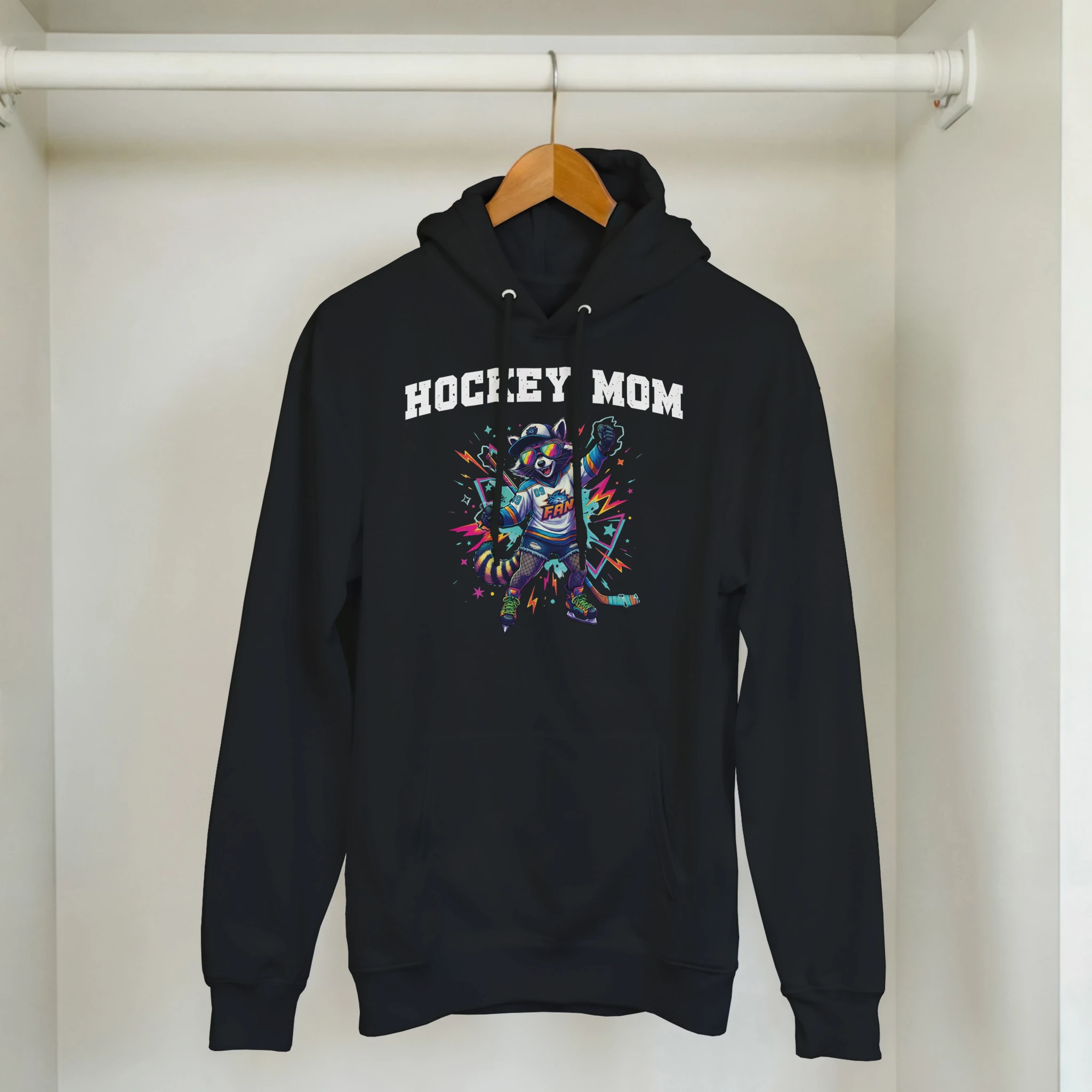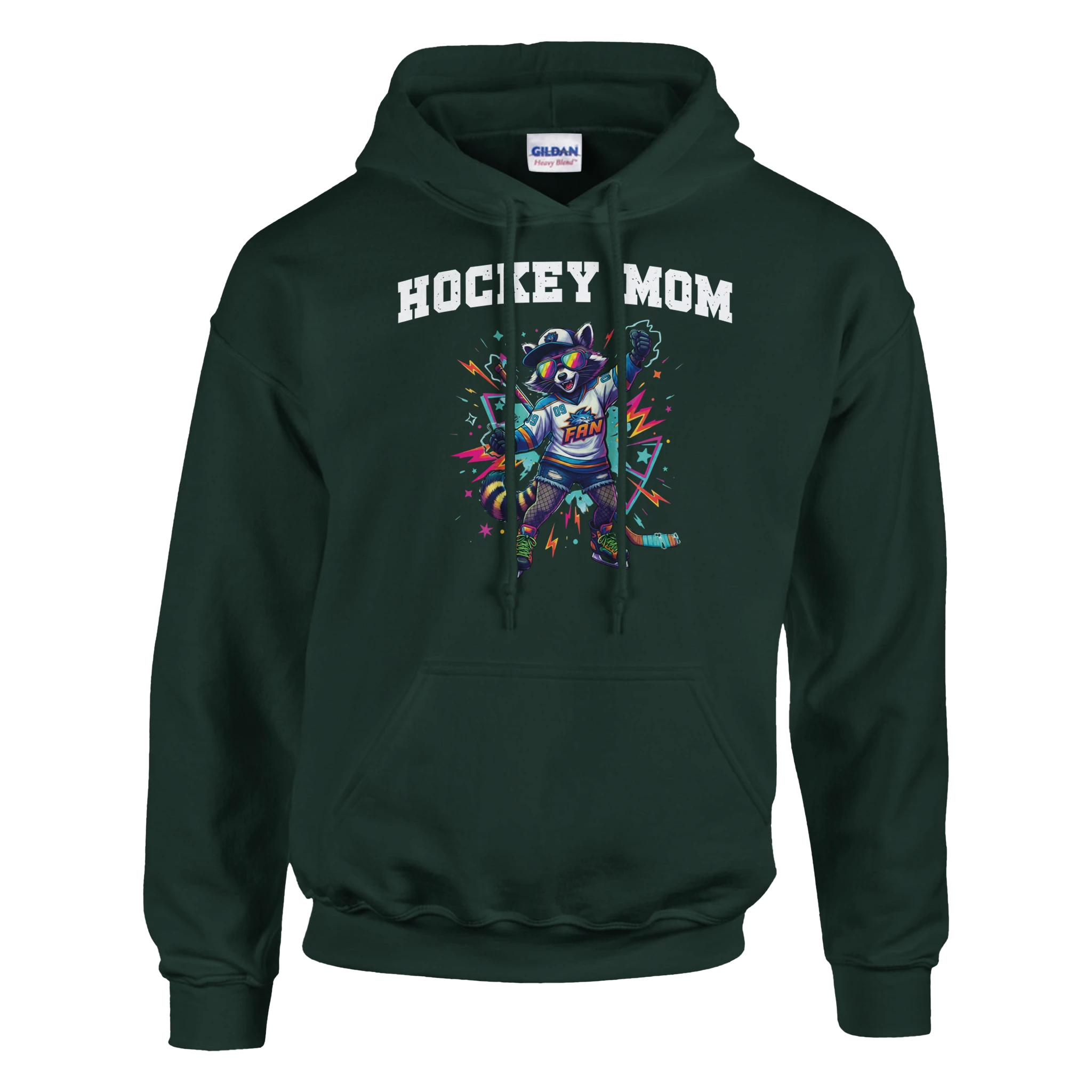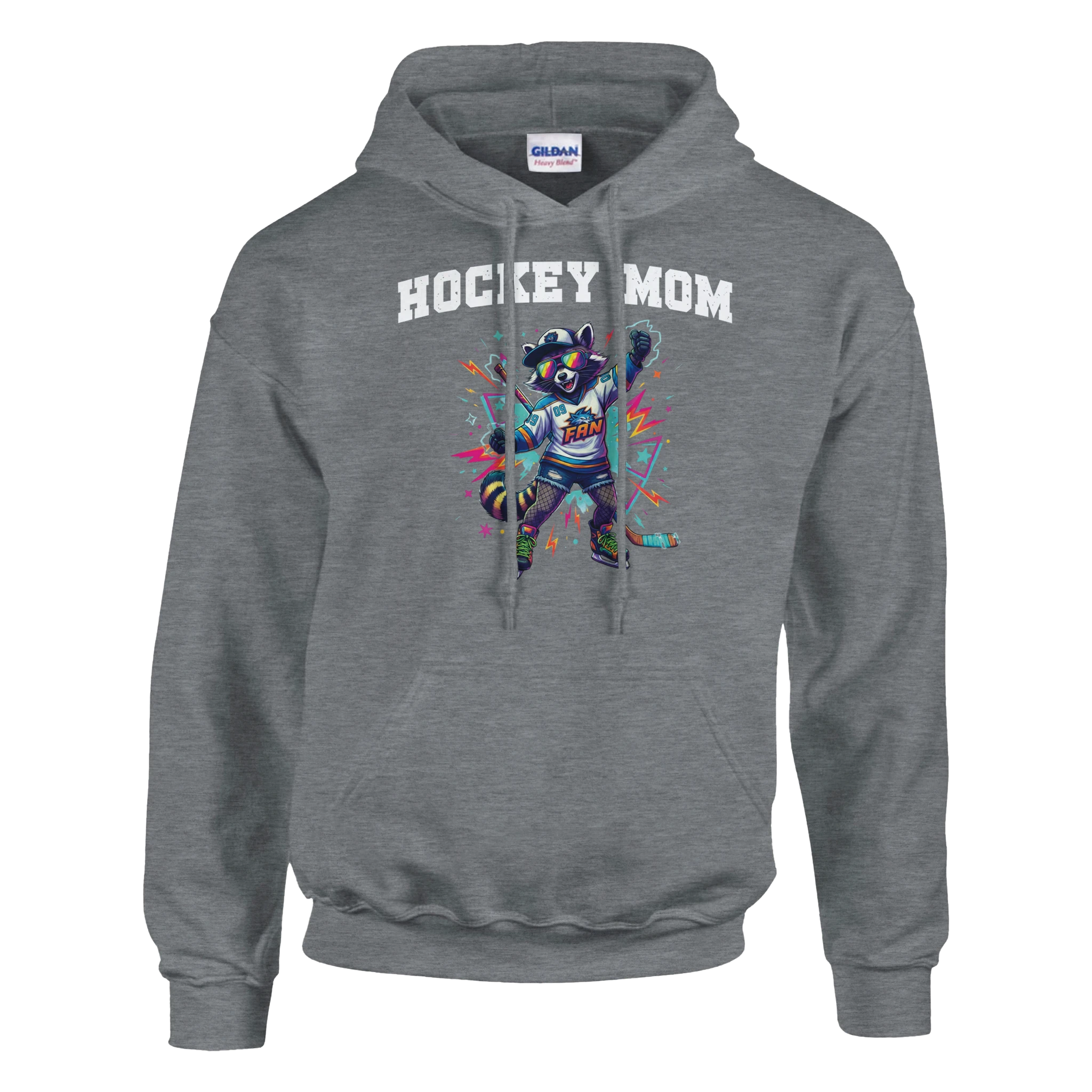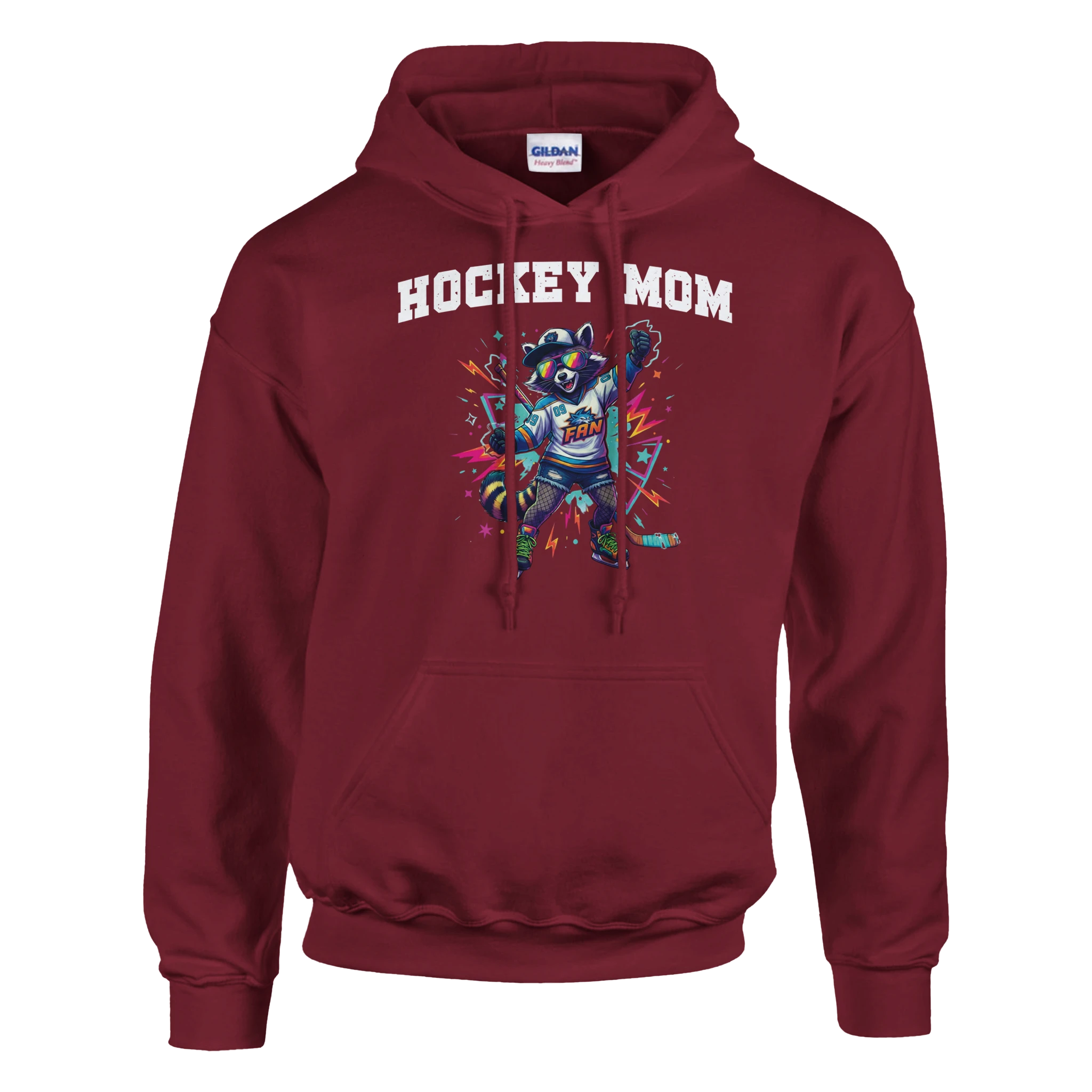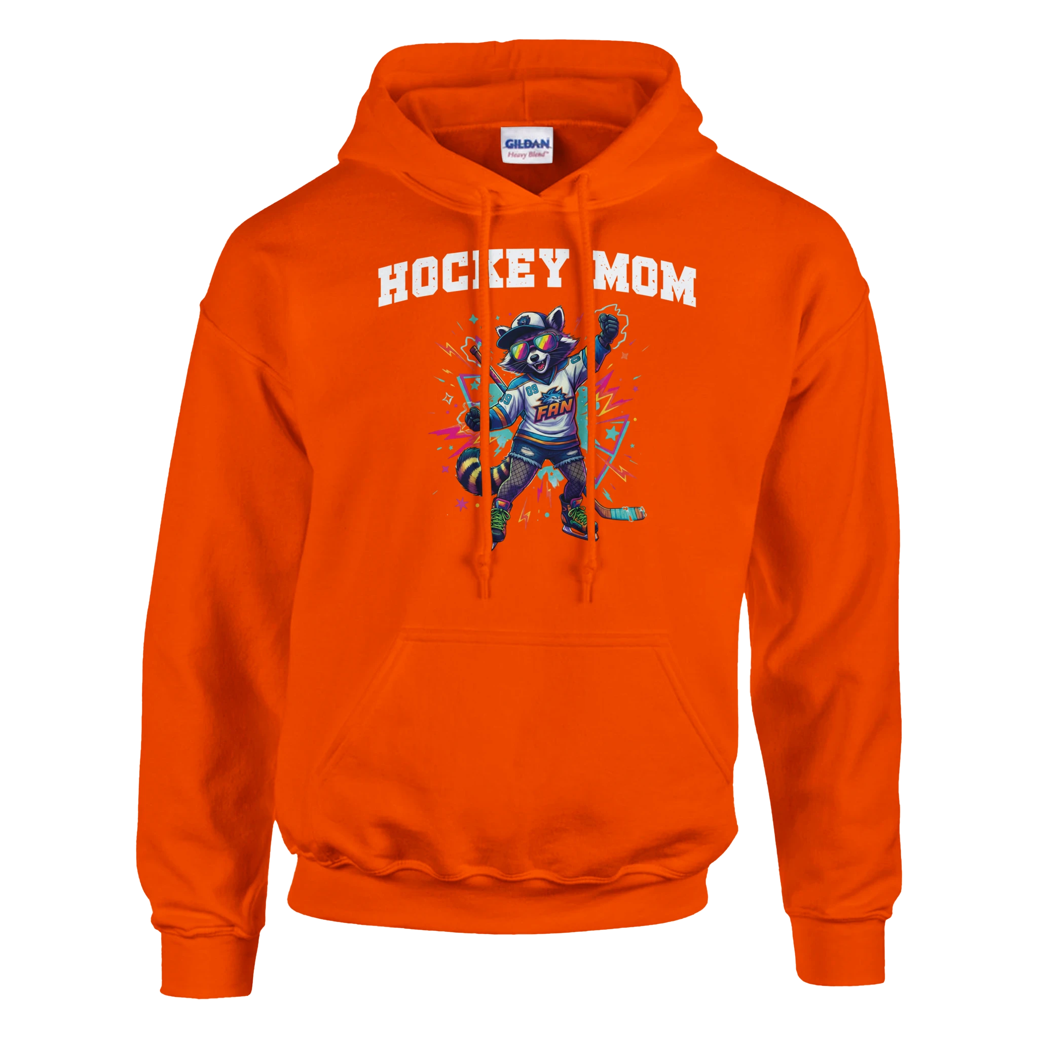 Sweat à capuche sport personnalisé « Hockey Mom« . Mélange coton/polyester épais, capuche doublée avec cordon, poche ventrale, confort optimal.