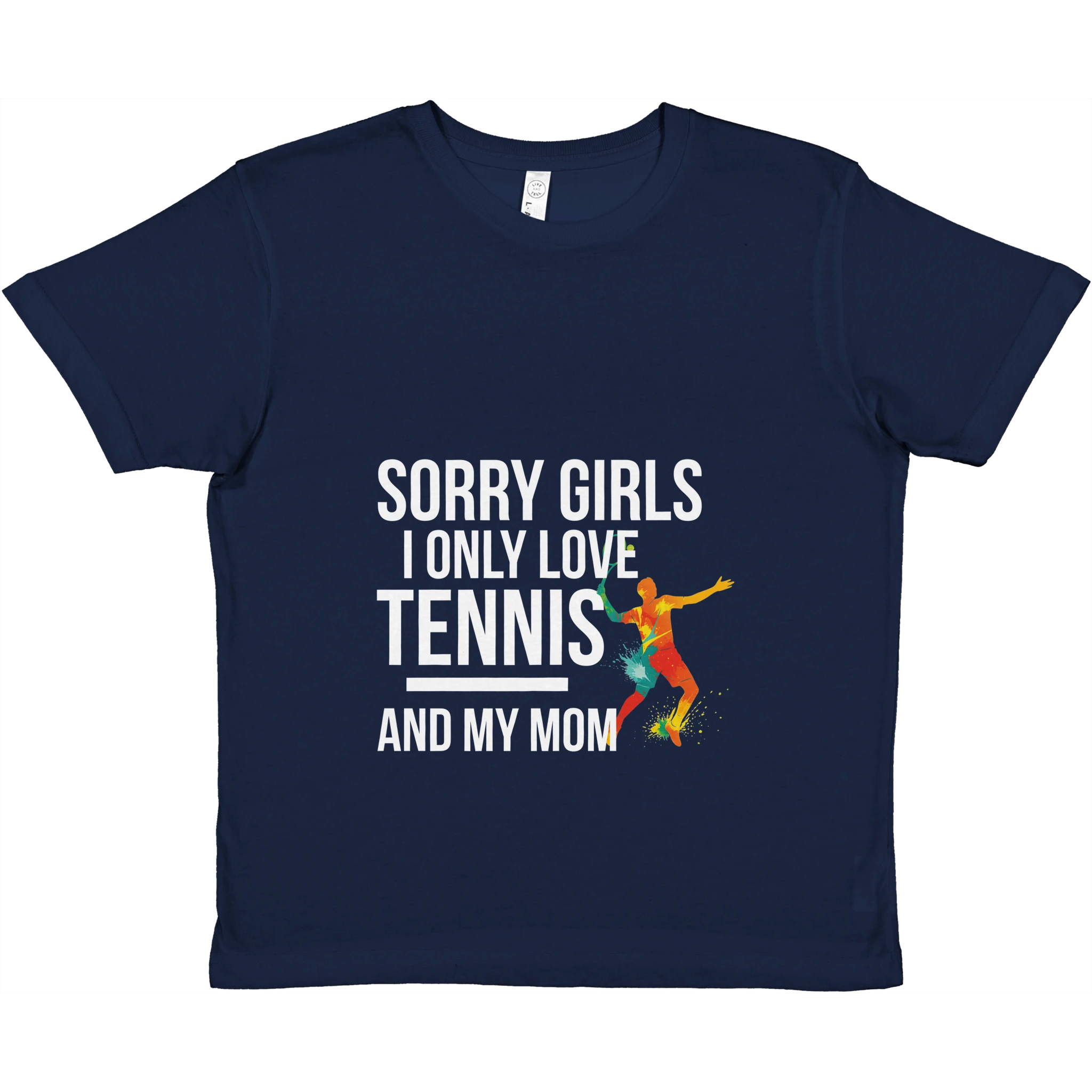 T-shirt enfant sport personnalisé « Sorry Girls I Only Love Tennis And My Mom« . Col ras du cou classique, ajustement parfait et douceur premium pour usage quotidien.