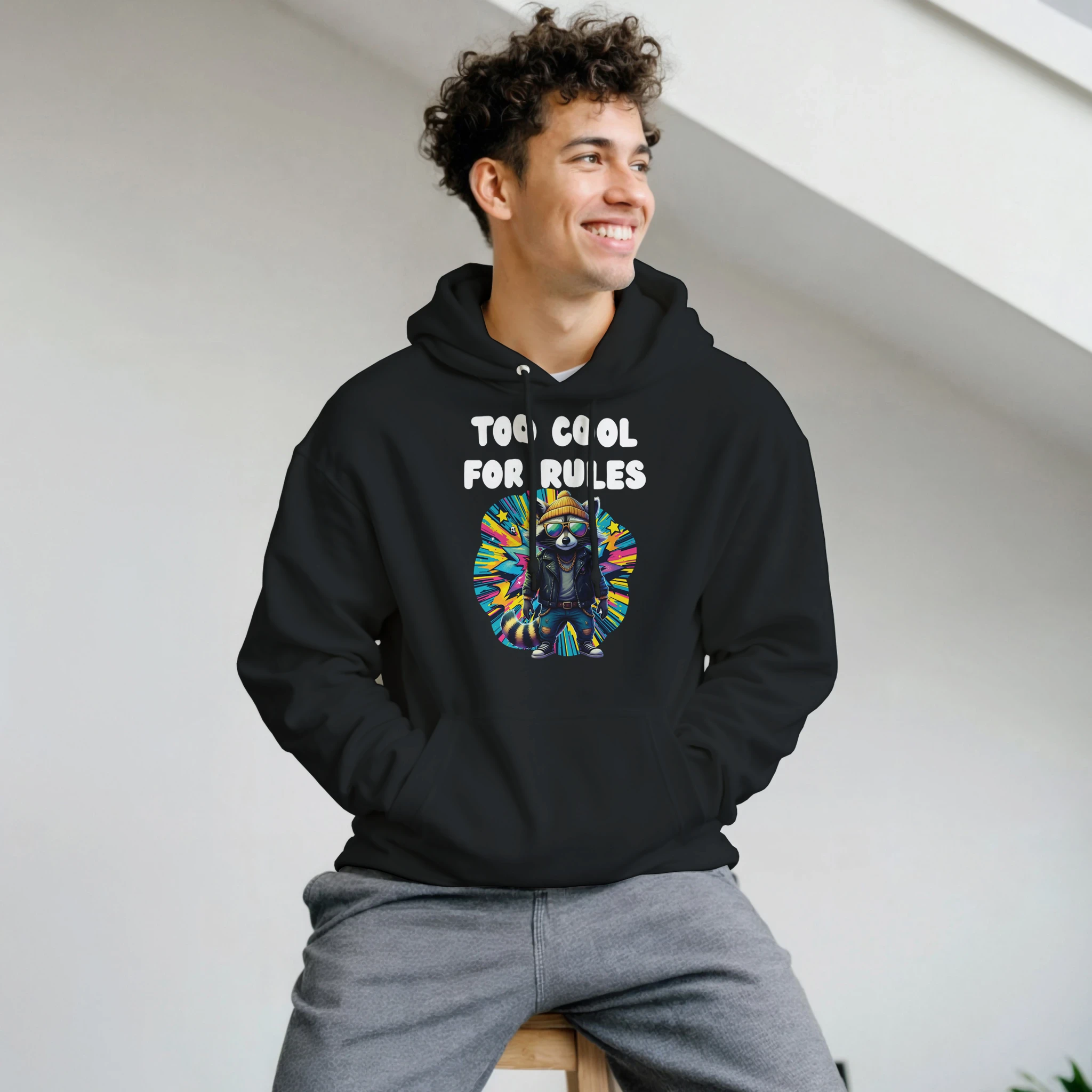 Il y a les gens qui suivent les règles. Et il y a les autres. Ceux qui font les choses à leur façon, avec leur propre style, à leur propre rythme. Ce sweat à capuche Too Cool For Rules a été créé pour toi. Pas pour faire joli. Pour afficher ce que tu es vraiment. Chez SportLove, on croit que les vêtements de sport doivent ressembler aux gens qui les portent. Authentiques, directs, avec une bonne dose d’humour. Tornooka, notre raton laveur mascotte, illustre ce design avec l’énergie et la personnalité qui te ressemblent.