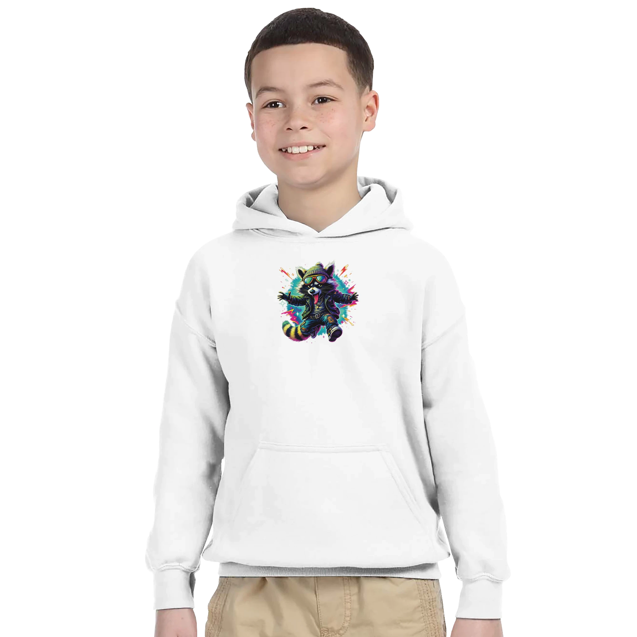 Il y a les vêtements de sport. Et il y a ceux qui racontent quelque chose. Tornooka, c’est le raton laveur fondateur de SportLove. Lunettes iridescentes, bonnet jaune, veste en cuir, baskets blanches et chaîne dorée — il a son style, sa personnalité, et une pizza à portée de main. Ce sweat à capuche enfant Tornooka a été créé pour les petits qui partagent cet état d’esprit : passionnés, décontractés, toujours là quand ça compte. Chez SportLove, on croit que les vêtements de sport doivent ressembler aux gens qui les portent. Authentiques, directs, avec une bonne dose d’humour.